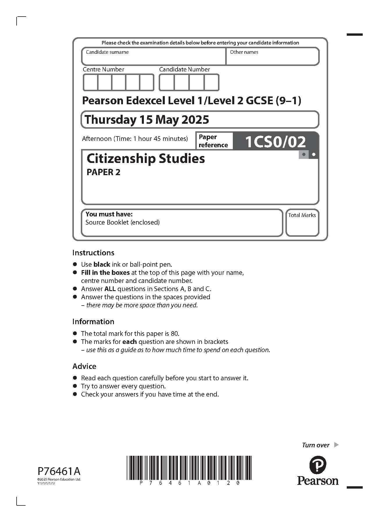 pearson edexcel gcse citizenship studies paper 2 2025 (1cs0/02). download this verified paper on www.leakedexams.com and...