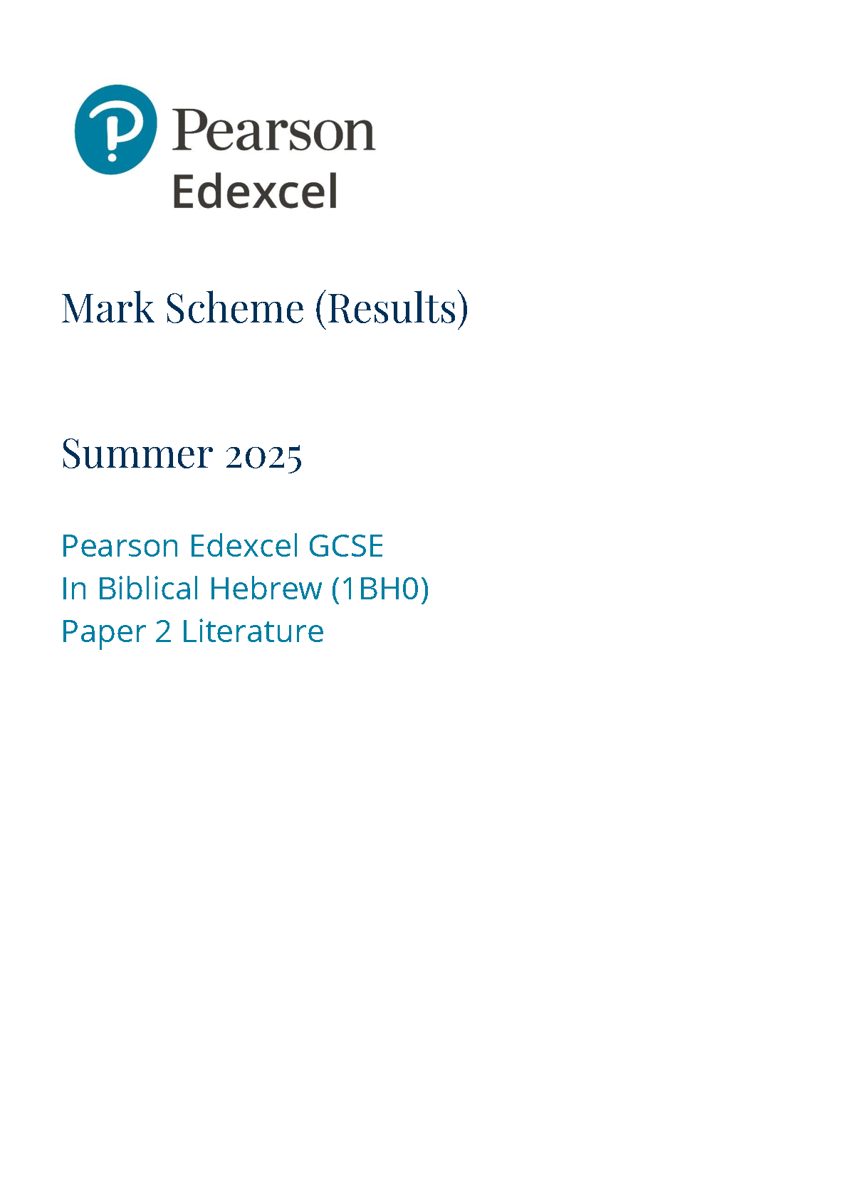 pearson edexcel gcse biblical hebrew paper 2 2025 mark scheme (1bh0/02). download this verified paper on www.leakedexams...