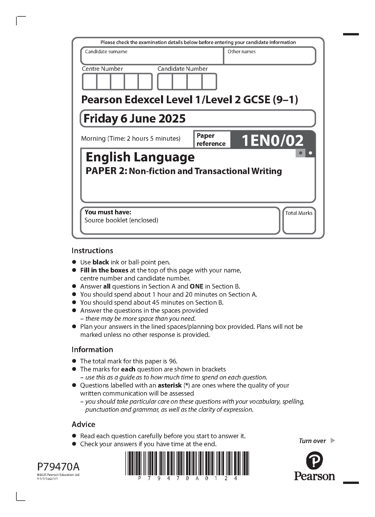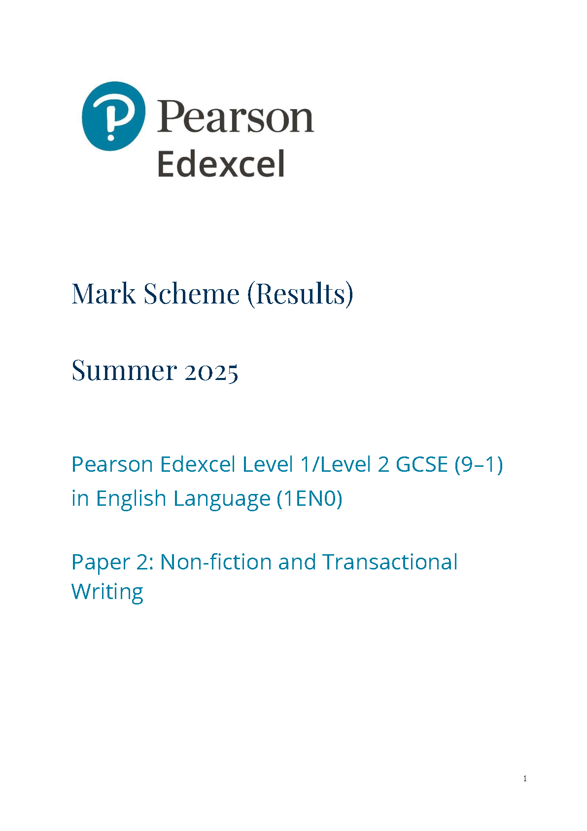 pearson edexcel gcse english language paper 2 2025 (1en0/02: non-fiction and transactional writing)