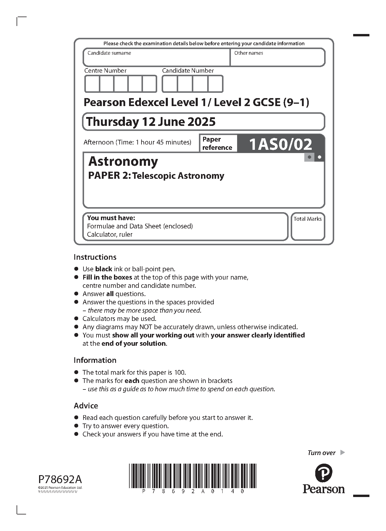 pearson edexcel gcse astronomy paper 2 2025 (1as0/02). download this verified paper on www.leakedexams.com and access th...
