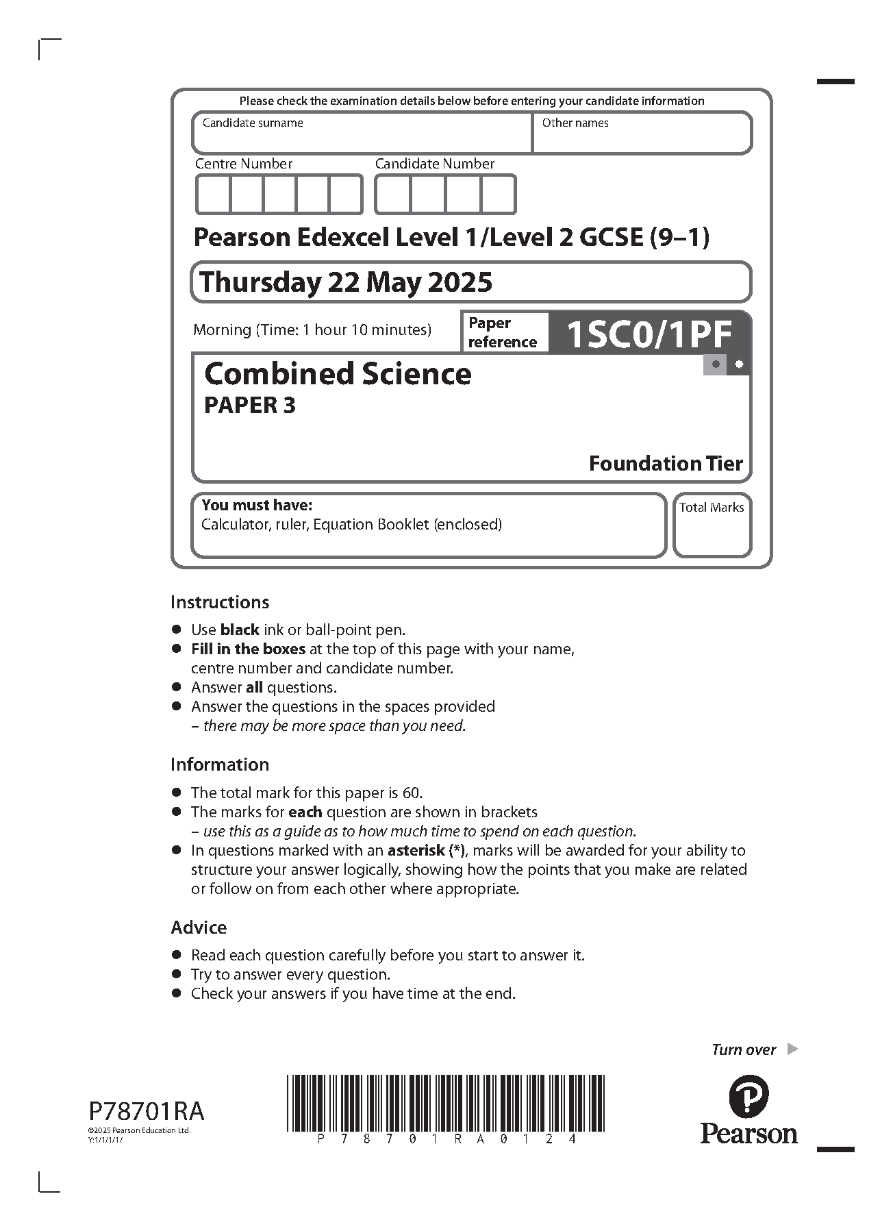 2025 Pearson Edexcel GCSE Combined Science Physics PAPER 3 and Mark Scheme Combined (1SC0/1PF: Foundation Tier). 2025 Pearson Edexcel GCSE Combined Science Physics PAPER 3 and Mark Scheme Combined (1SC0/1PF: Foundation Tier) Edexcel