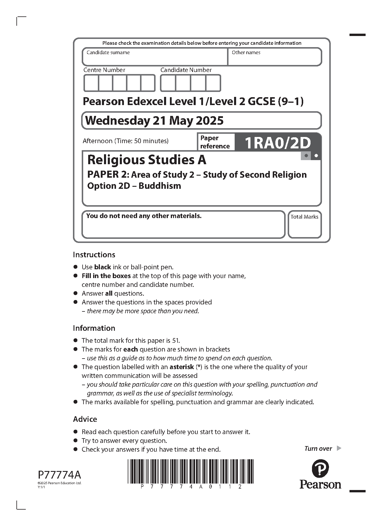 2025 Pearson Edexcel GCSE Religious Studies A PAPER 2 and Mark Scheme Combined (1RA0/2D: Buddhism). 2025 Pearson Edexcel GCSE Religious Studies A PAPER 2 and Mark Scheme Combined (1RA0/2D: Buddhism) Edexcel