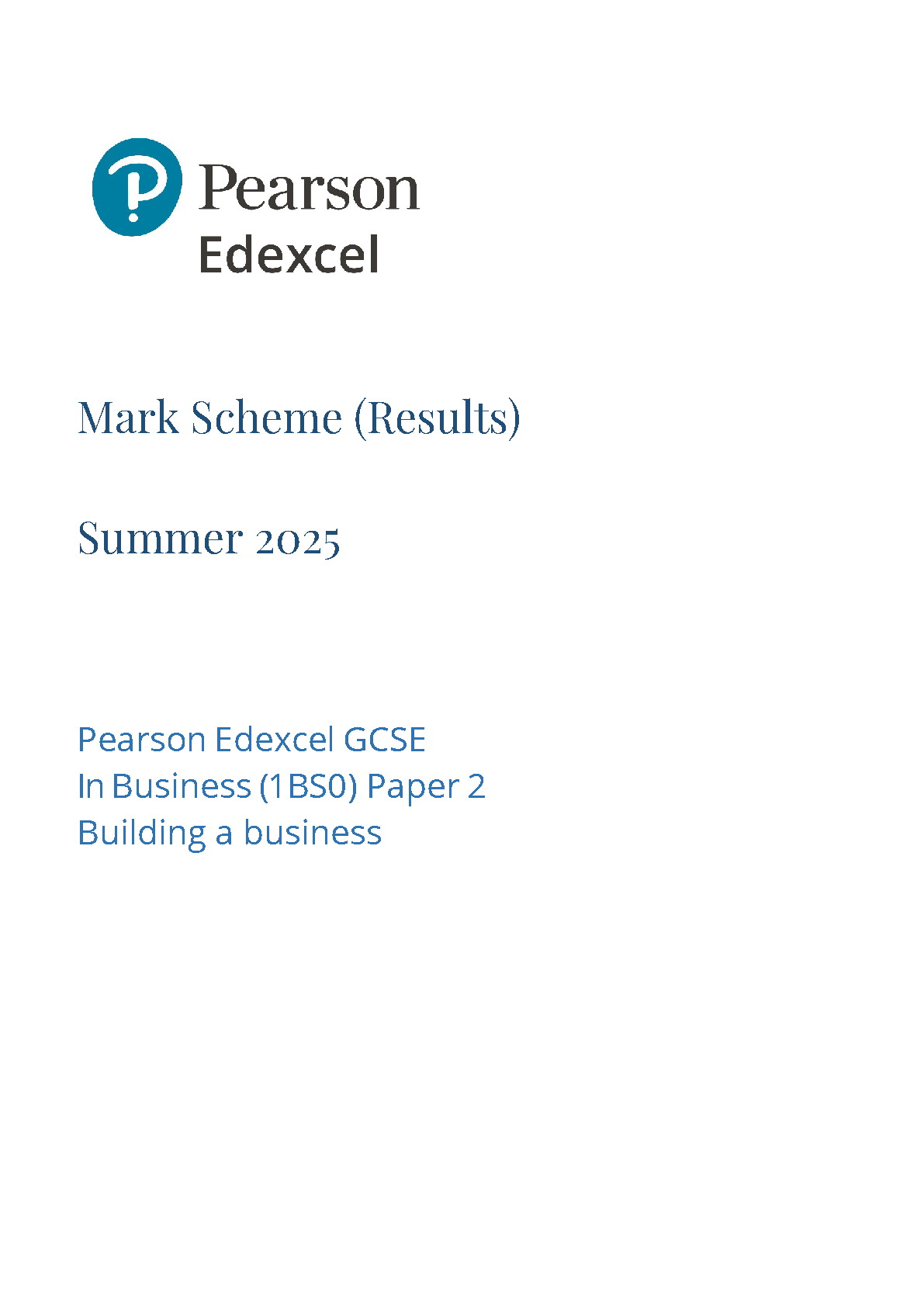 pearson edexcel gcse business paper 2 2025 mark scheme (1bs0/02: building a business). download this verified paper on w...