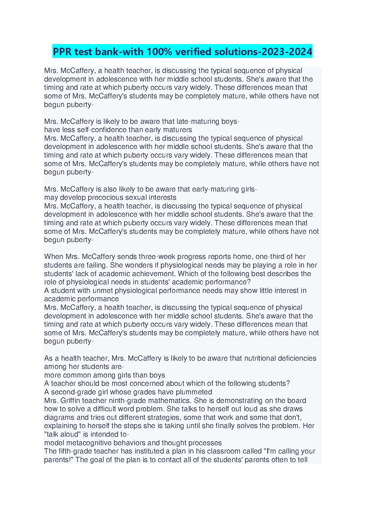 PPR Test Bank with 100% verified solutions 2024. PPR Test Bank with 100% verified solutions 2024 TEST BANK