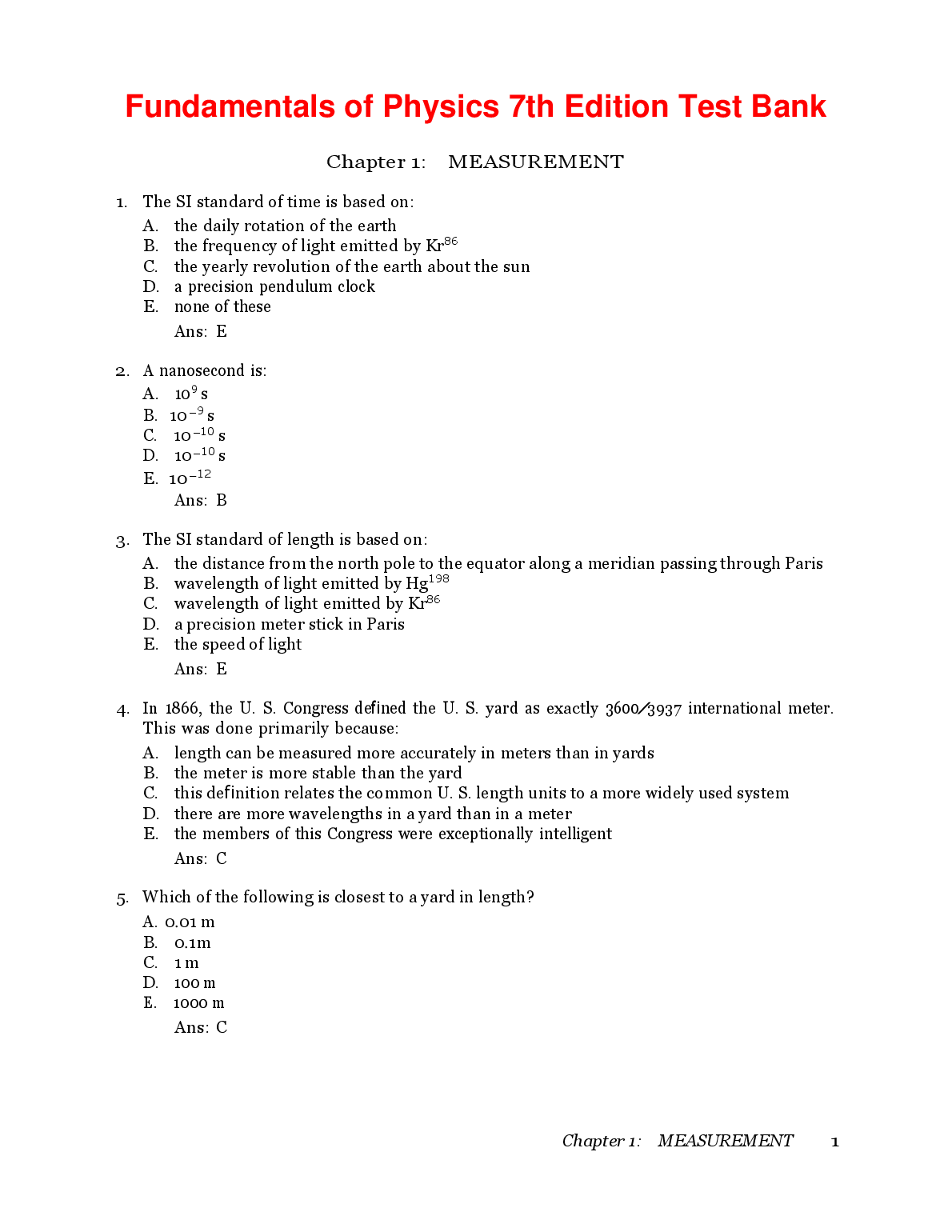 TEST BANK Fundamentals of Physics 7th Edition. TEST BANK Fundamentals of Physics 7th Edition TEST BANK