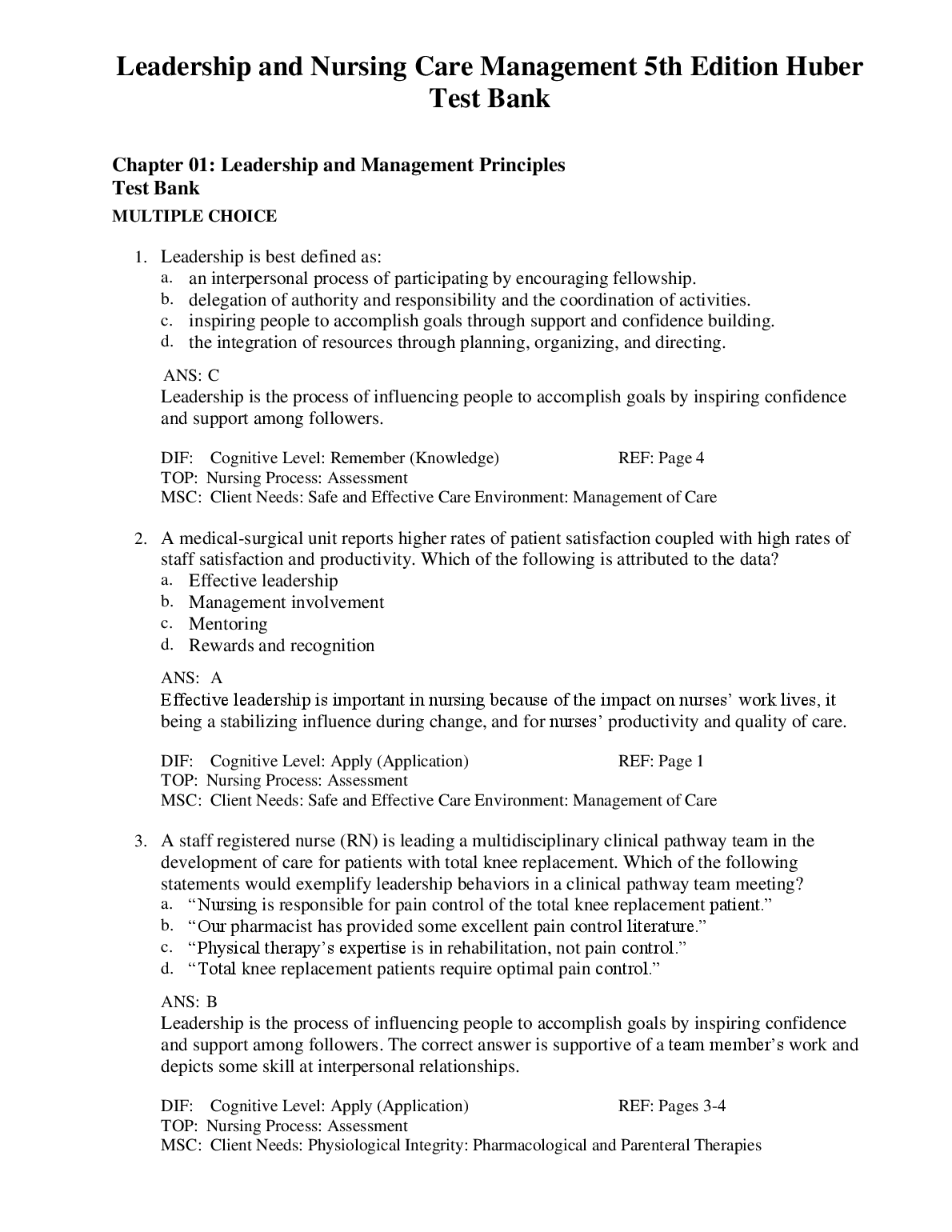 leadership and nursing care management 5th edition huber test bank. download on www.leakedexams.com instantly.
