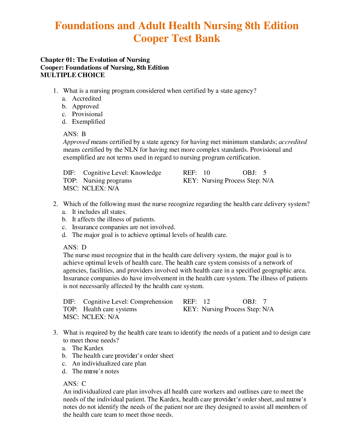 foundations and adult health nursing 8th edition cooper test bank. download on www.leakedexams.com instantly.