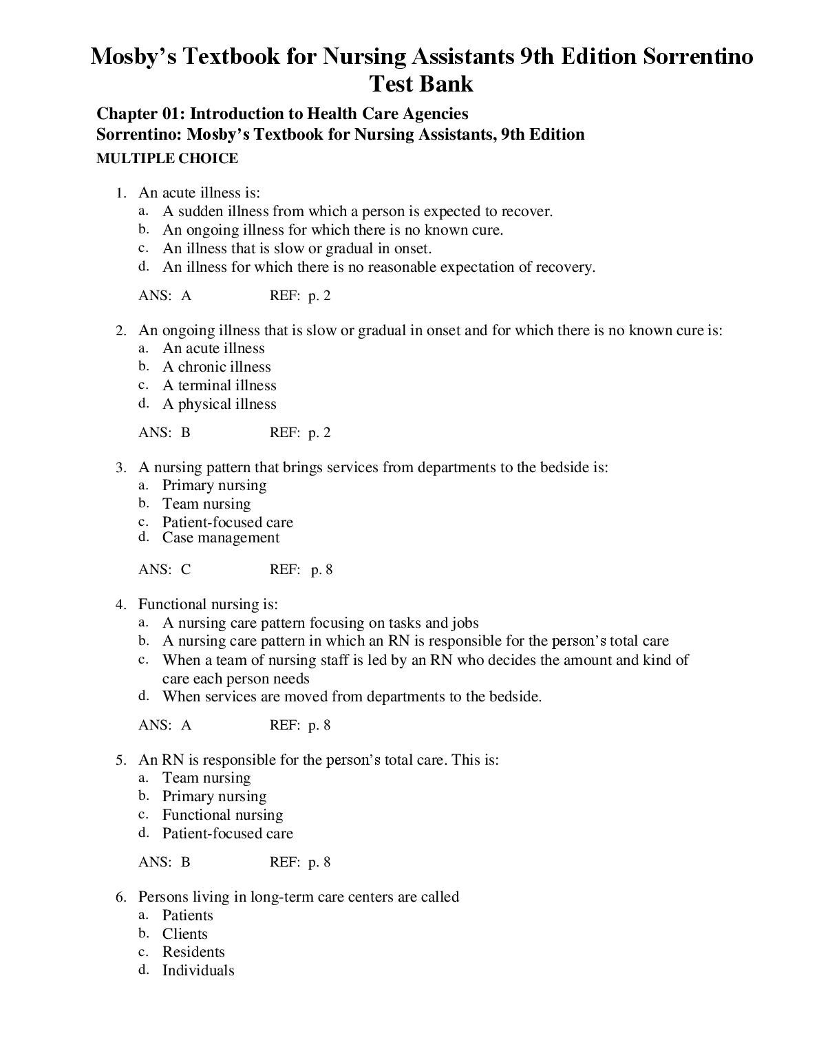 Test Bank for Mosby's Textbook for Nursing Assistants 9th Edition by Sheila A. Sorrentino and Leighann Remmert. Test Bank for Mosby's Textbook for Nursing Assistants 9th Edition by Sheila A. Sorrentino and Leighann Remmert TEST BANK