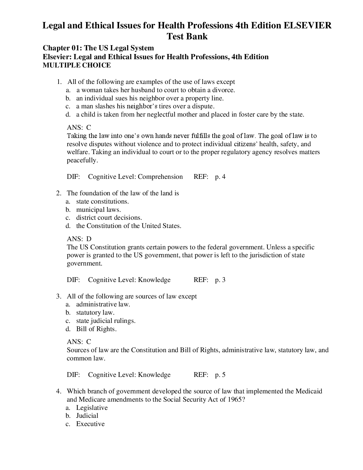 Test Bank for Legal and Ethical Issues for Health Professions 4th Edition by Elsevier Inc. Test Bank for Legal and Ethical Issues for Health Professions 4th Edition by Elsevier Inc TEST BANK