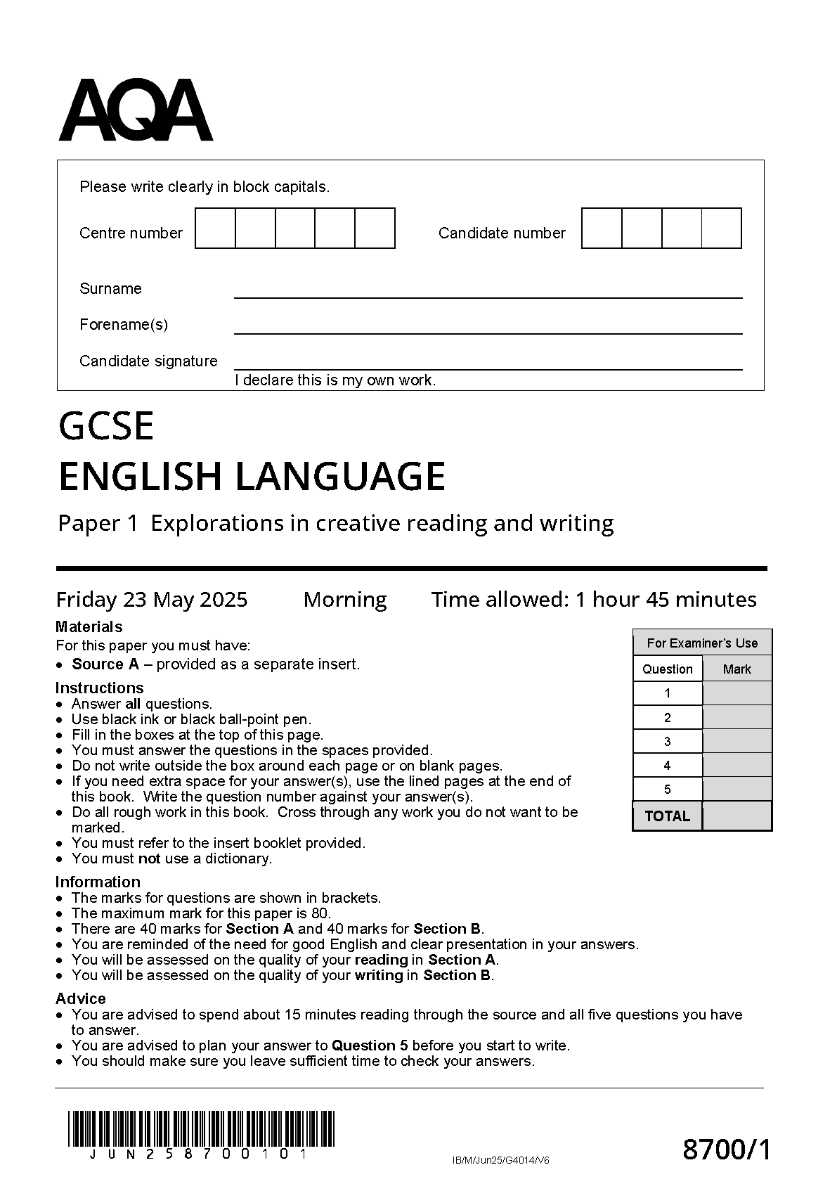aqa gcse english language paper 1 2025 (8700/1: explorations in creative reading and writing). download this verified pa...