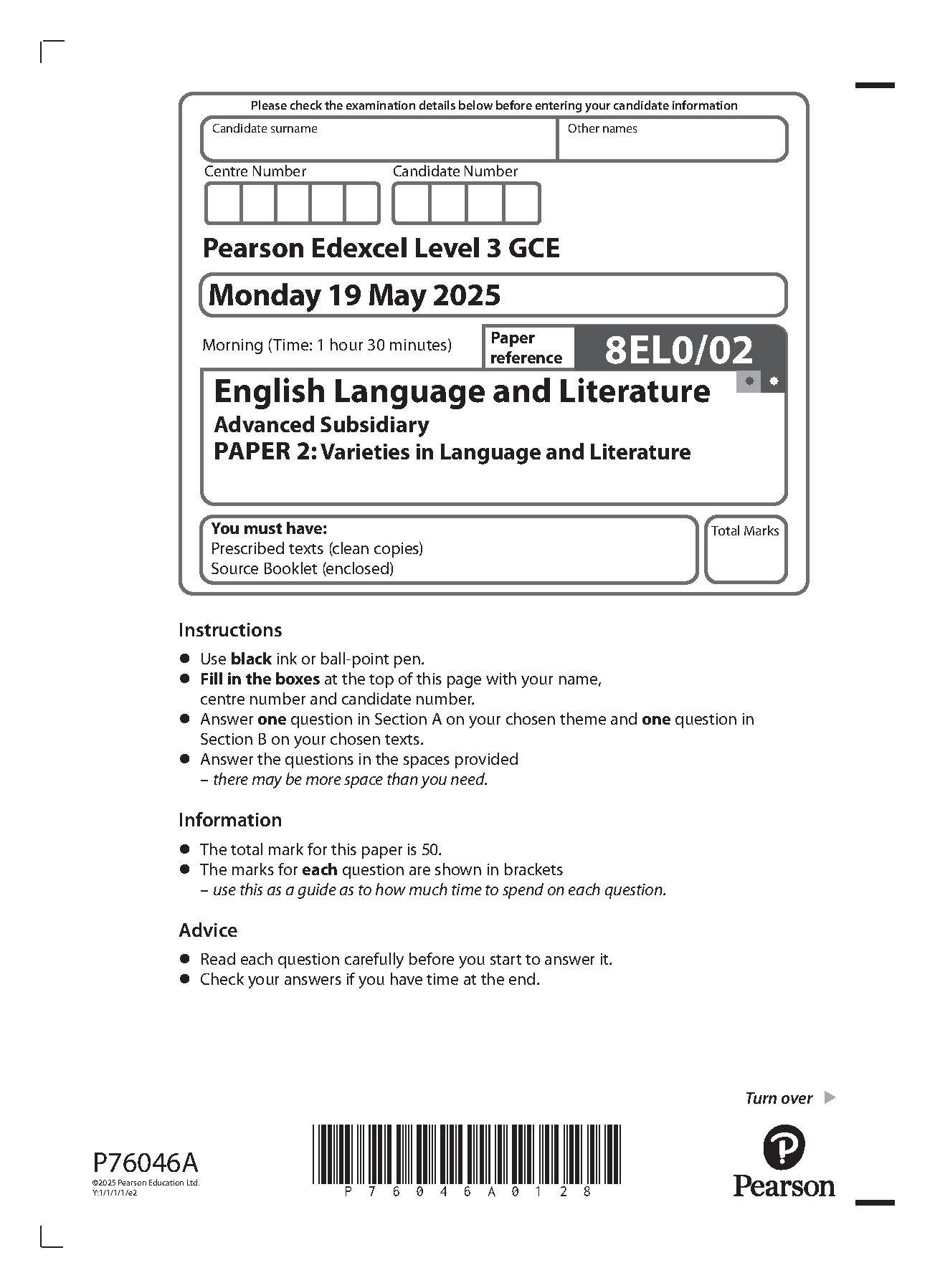 2025 Pearson Edexcel AS Level English Language and Literature Paper 2 and Mark Scheme Combined (8EL0/02: Varieties in Language and Literature). 2025 Pearson Edexcel AS Level English Language and Literature Paper 2 and Mark Scheme Combined (8EL0/02: Varieties in Language and Literature) Pearson Edexcel A and AS Papers and Mark Schemes