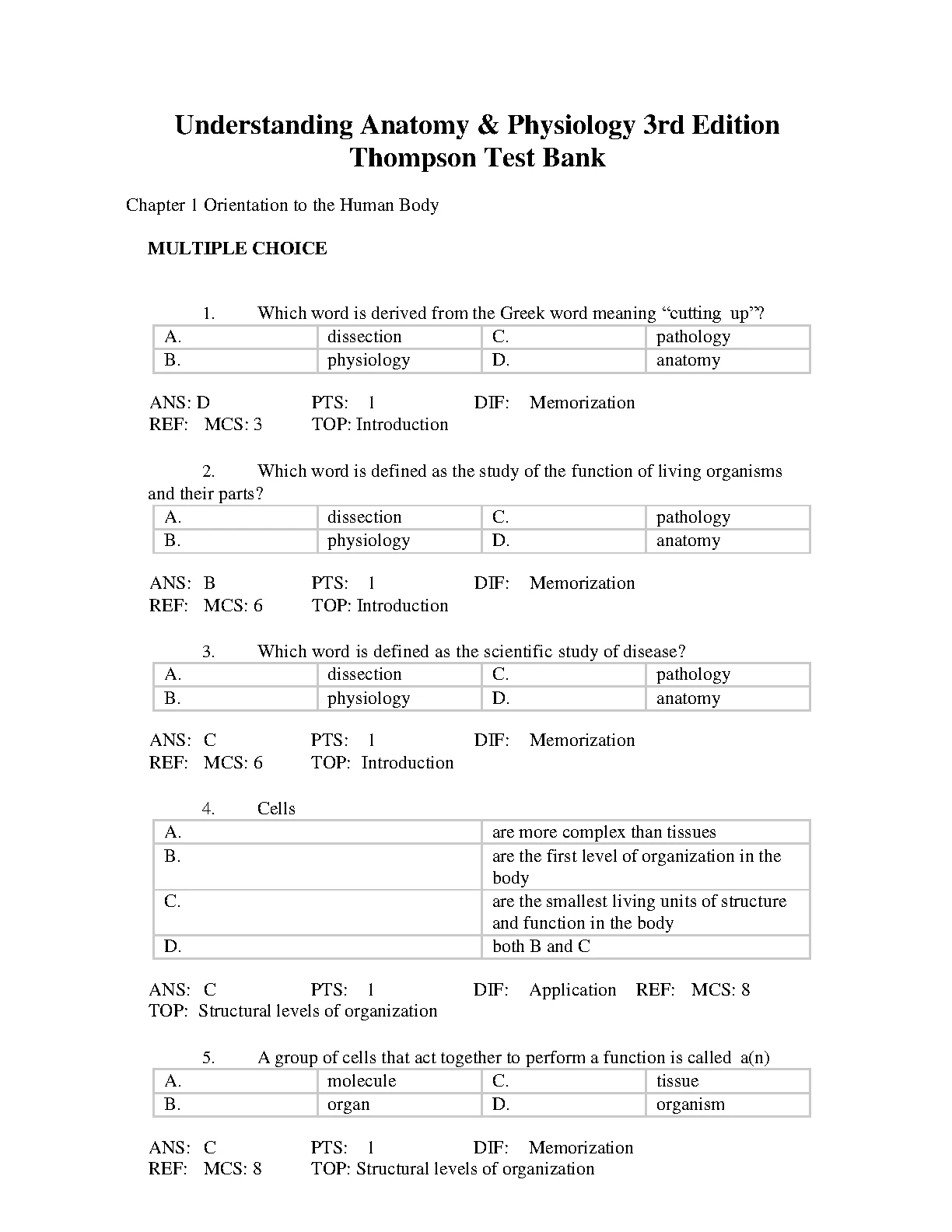 Test Bank for Understanding Anatomy Physiology 3rd Edition by Thompson. Test Bank for Understanding Anatomy Physiology 3rd Edition by Thompson TEST BANK