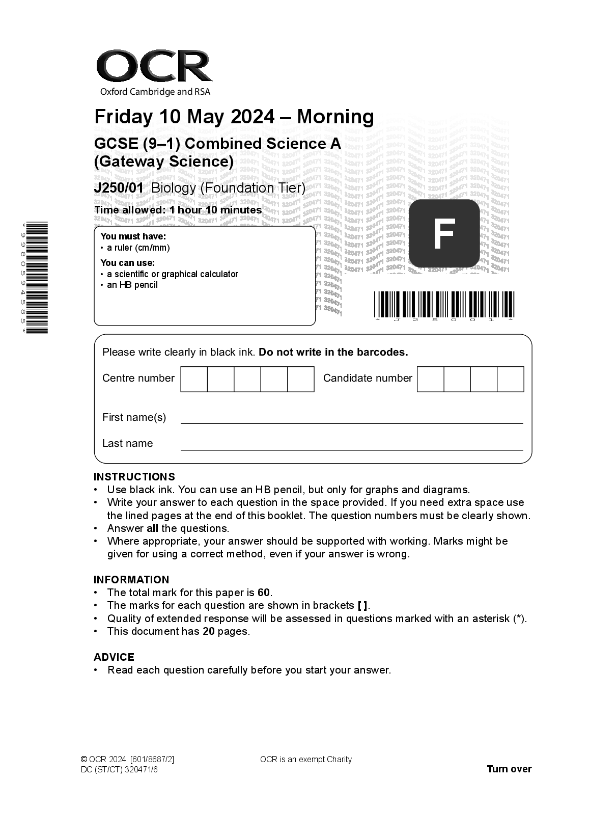 ocr gcse biology a paper 1 mark scheme 2024 (j247/01: foundation tier). download the official and verified paper on www....
