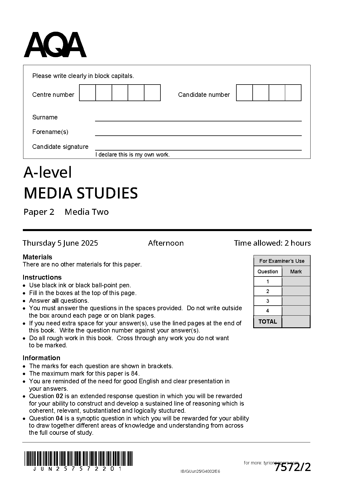 aqa a level media studies paper 2 2025 (7572/2: media two). download this verified paper on www.leakedexams.com and acce...
