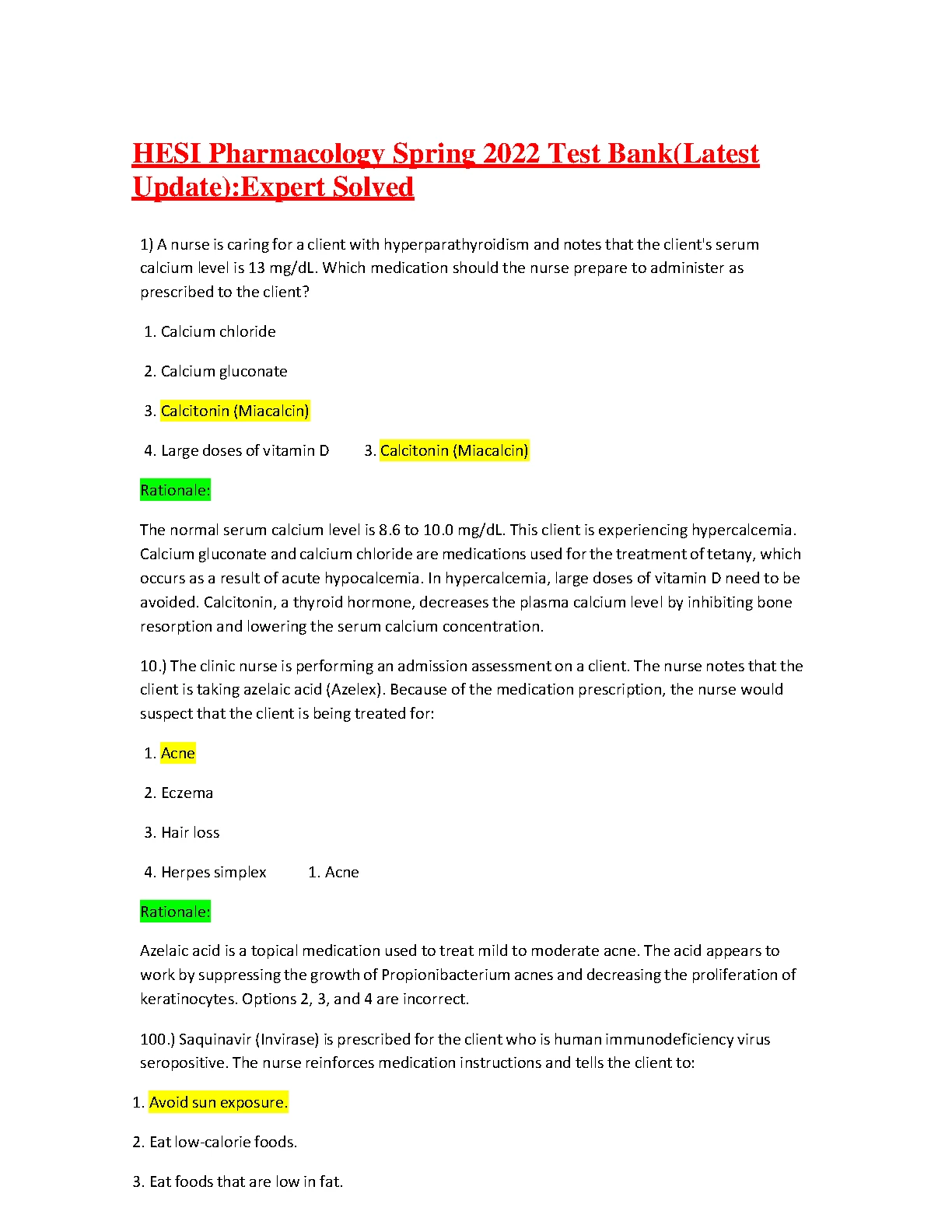 HESI Pharmacology Test Bank Questions and Solution Guide A+ Graded 2024. HESI Pharmacology Test Bank Questions and Solution Guide A+ Graded 2024 TEST BANK