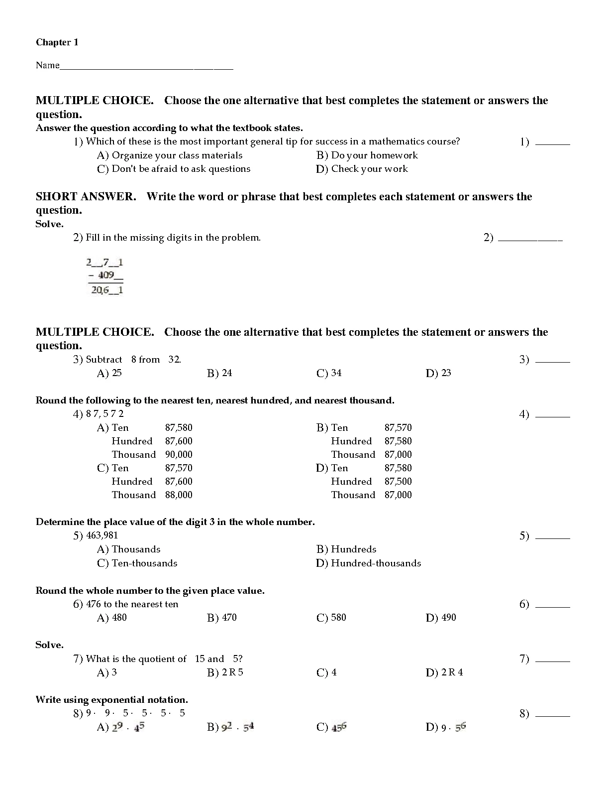 Test Bank for Basic College Mathematics with Early Integers 4th Edition, by Elayn Martin-Gay. Test Bank for Basic College Mathematics with Early Integers 4th Edition, by Elayn Martin-Gay TEST BANK