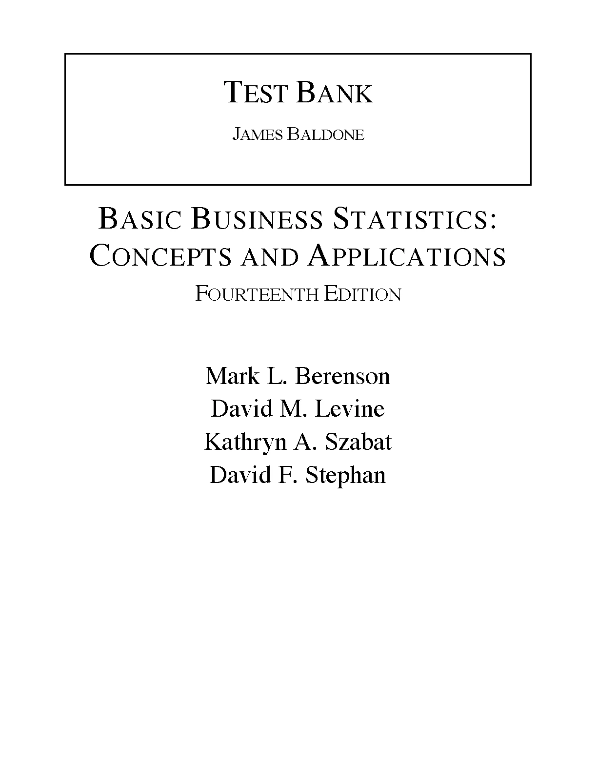 Test Bank for Basic Business Statistics 14th Edition by Mark Berenson, David Levine and Kathryn Szabat. Test Bank for Basic Business Statistics 14th Edition by Mark Berenson, David Levine and Kathryn Szabat TEST BANK
