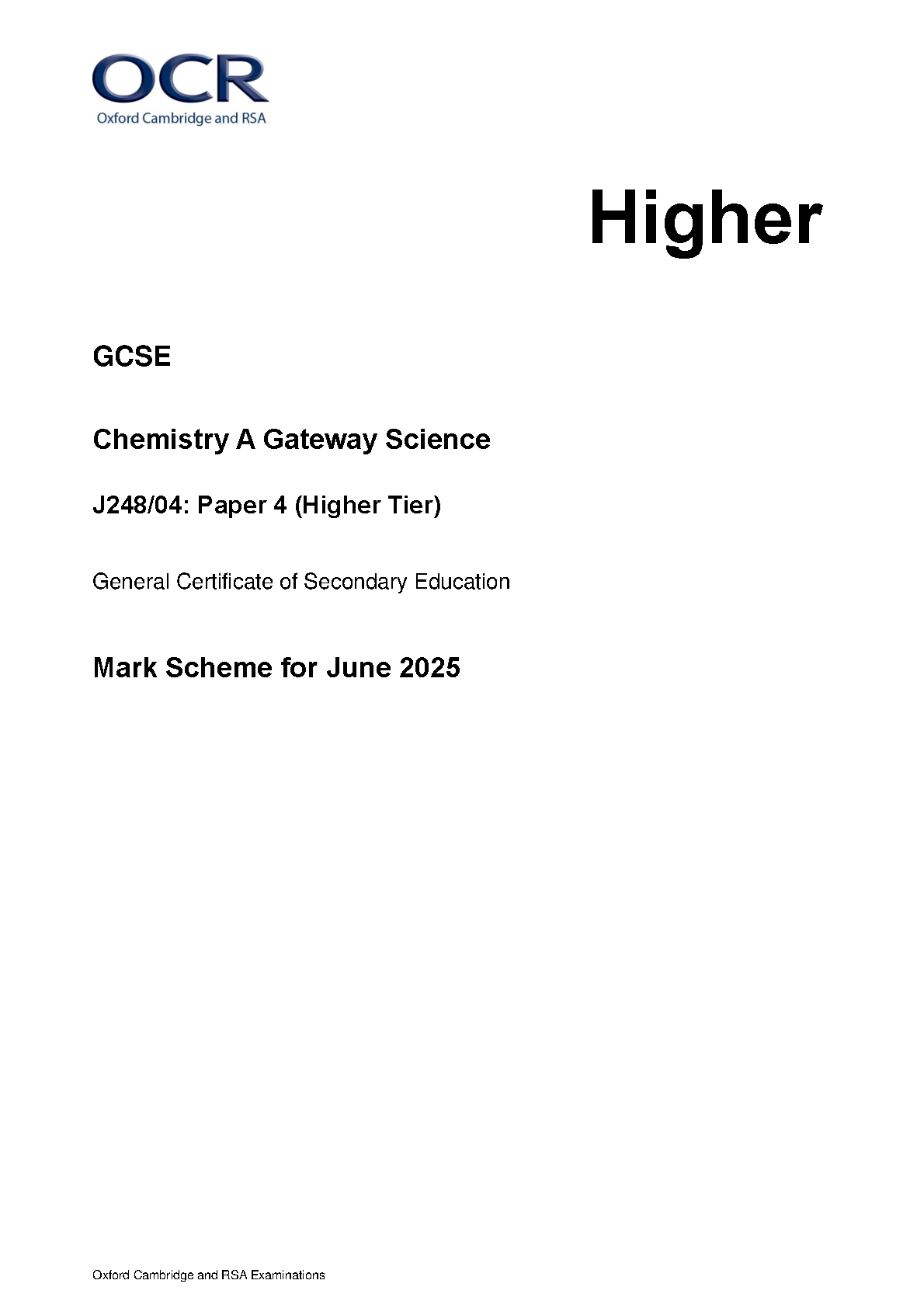 2025 OCR GCSE Chemistry A Higher Tier PAPER 4 J248/04. 2025 OCR GCSE Chemistry A Higher Tier PAPER 4 J248/04 OCR GCSE Papers & mark schemes