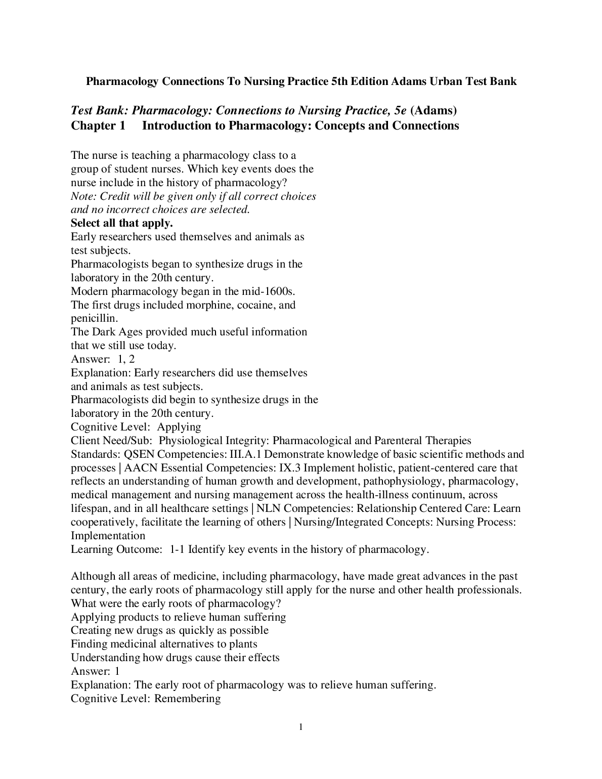 TEST BANK Pharmacology Connections To Nursing Practice 5th Edition ( BY Adams Urban ). TEST BANK Pharmacology Connections To Nursing Practice 5th Edition ( BY Adams Urban ) TEST BANK