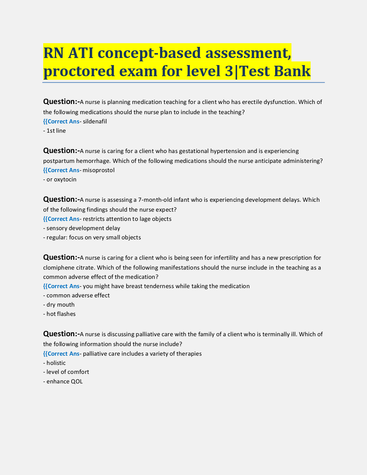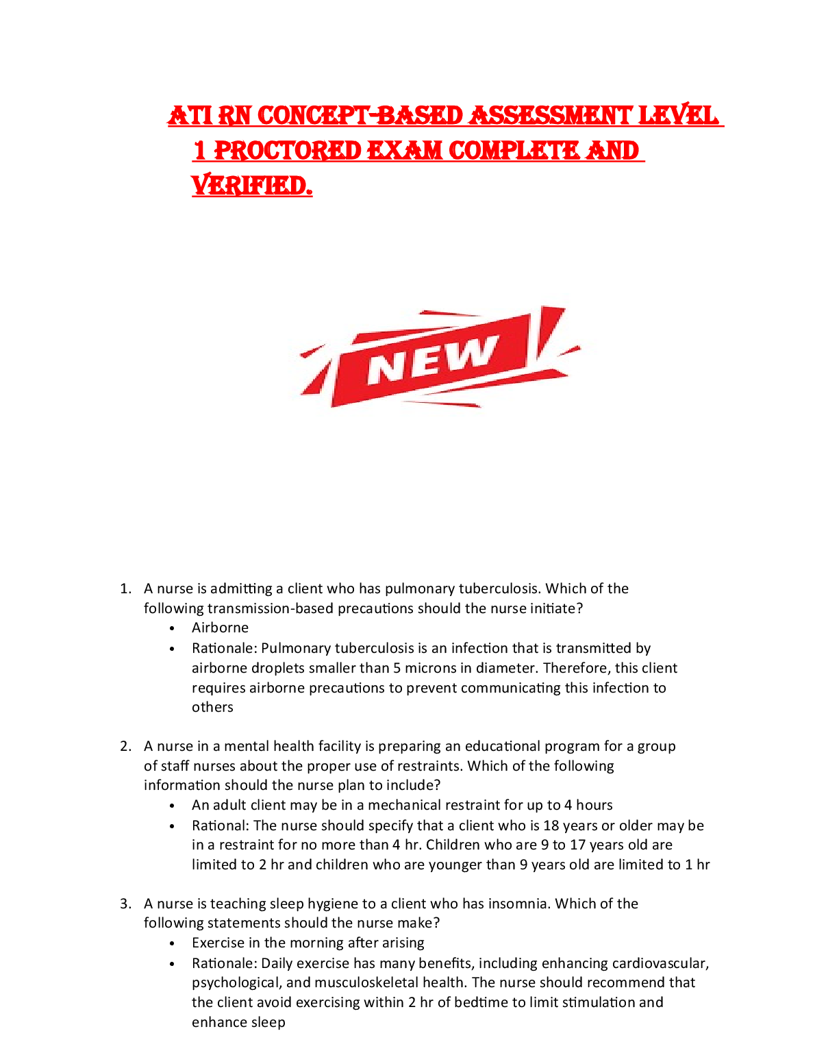 ATI RN CONCEPT-BASED ASSESSMENT LEVEL 1 PROCTORED EXAM 2024. ATI RN CONCEPT-BASED ASSESSMENT LEVEL 1 PROCTORED EXAM 2024 ATI