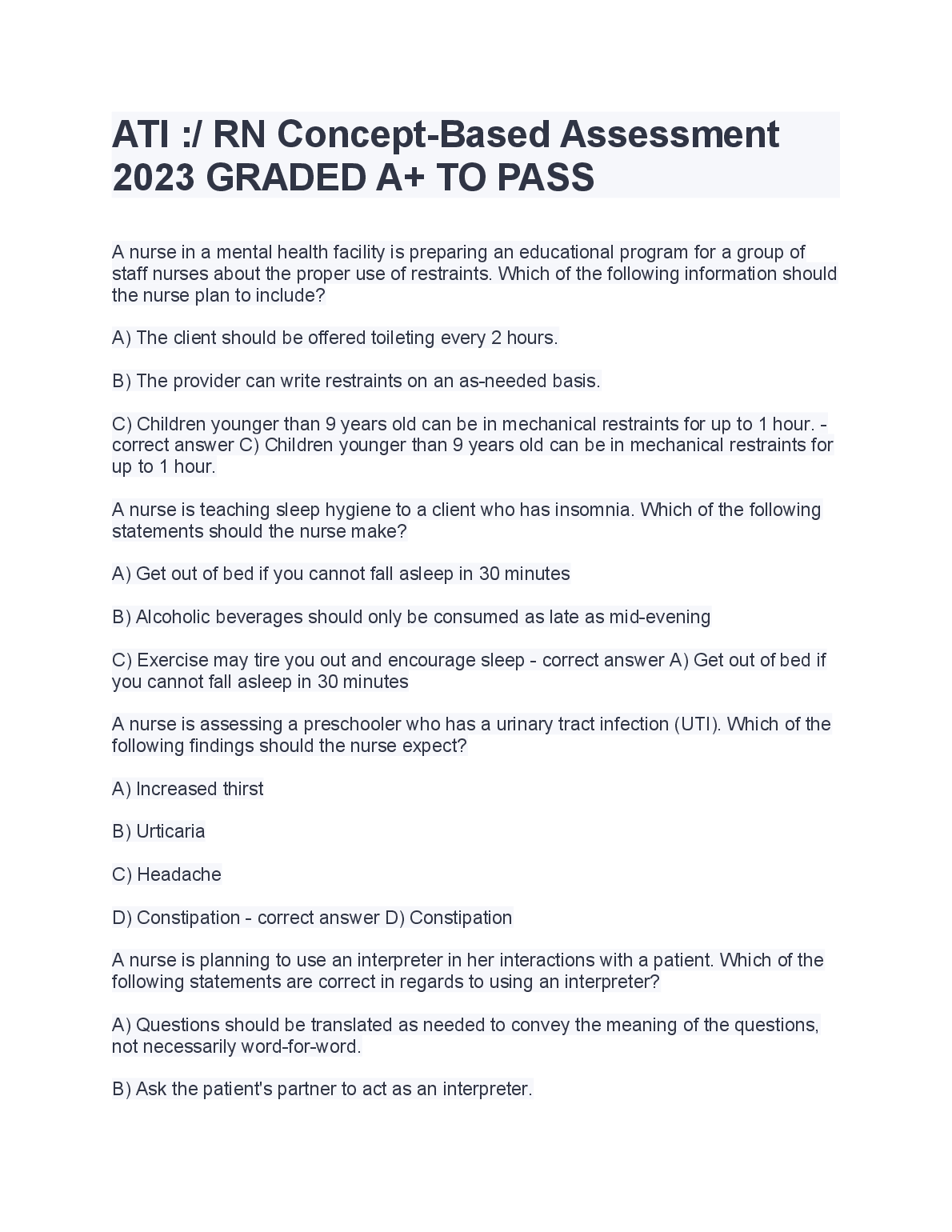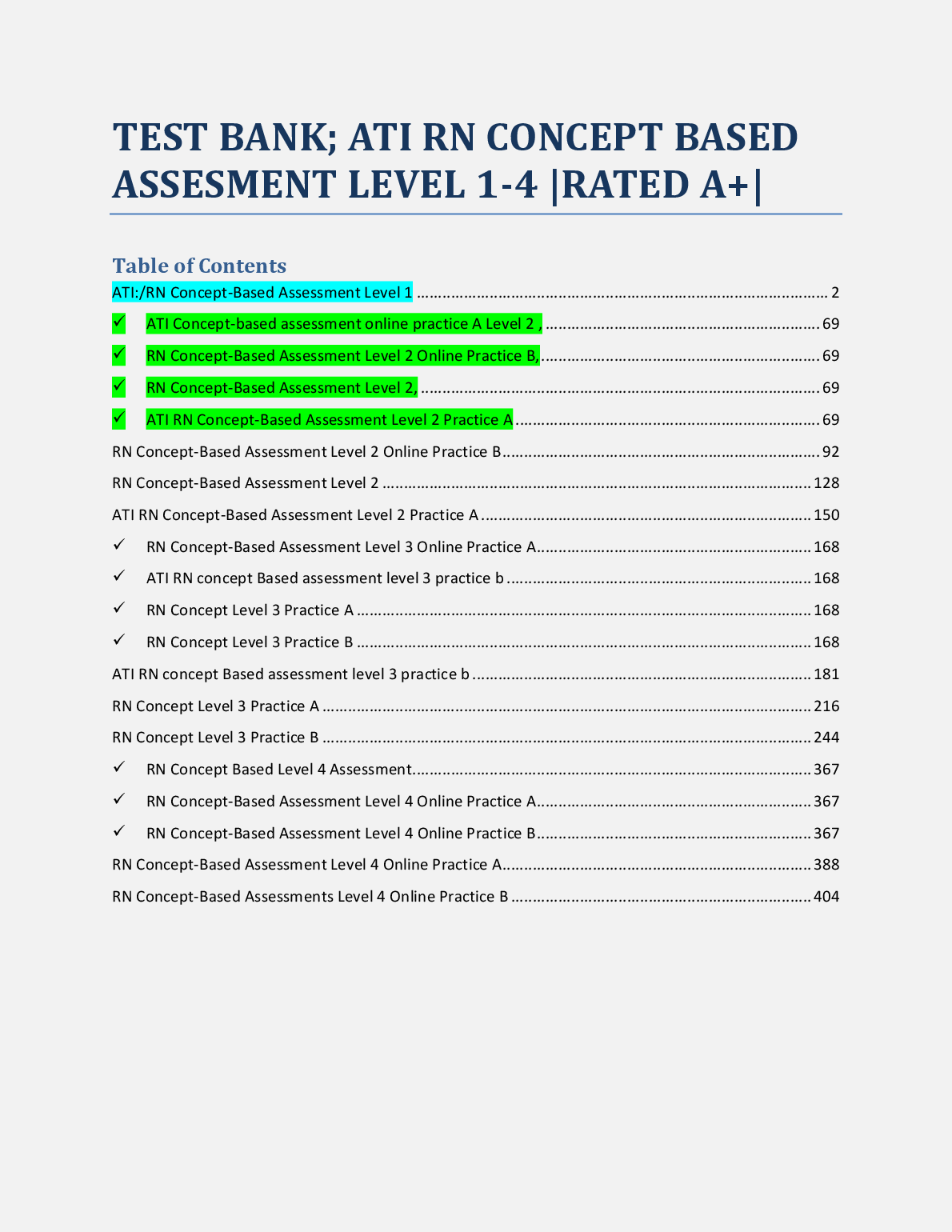 ATI RN CONCEPT_BASED ASSESSMENT LEVEL 1 ONLINE PRACTICE A 100% Correct Answers 2024. ATI RN CONCEPT_BASED ASSESSMENT LEVEL 1 ONLINE PRACTICE A 100% Correct Answers 2024 ATI