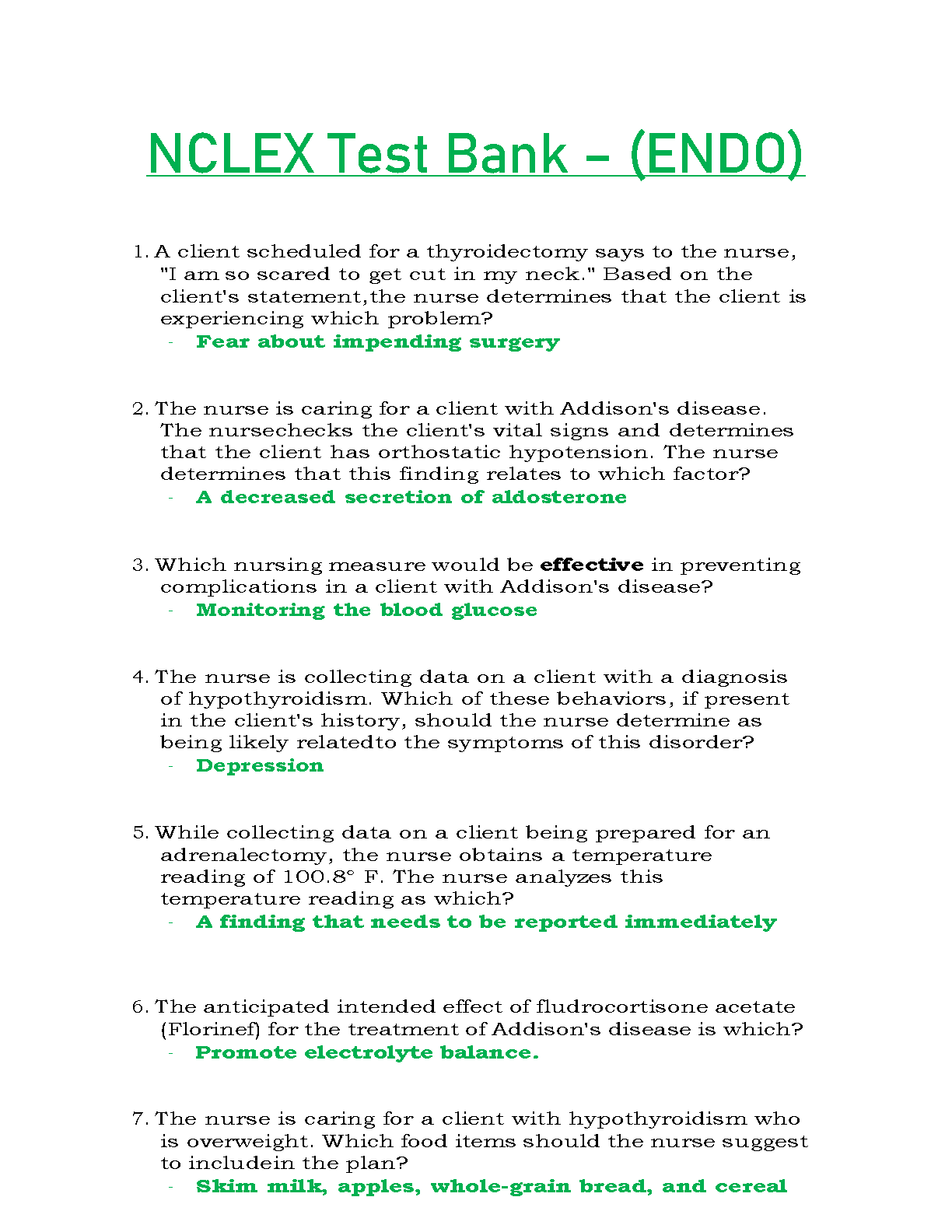 test bank for nclex endo. most recent with 100% verified solutions. download this verified paper on www.leakedexams.com...