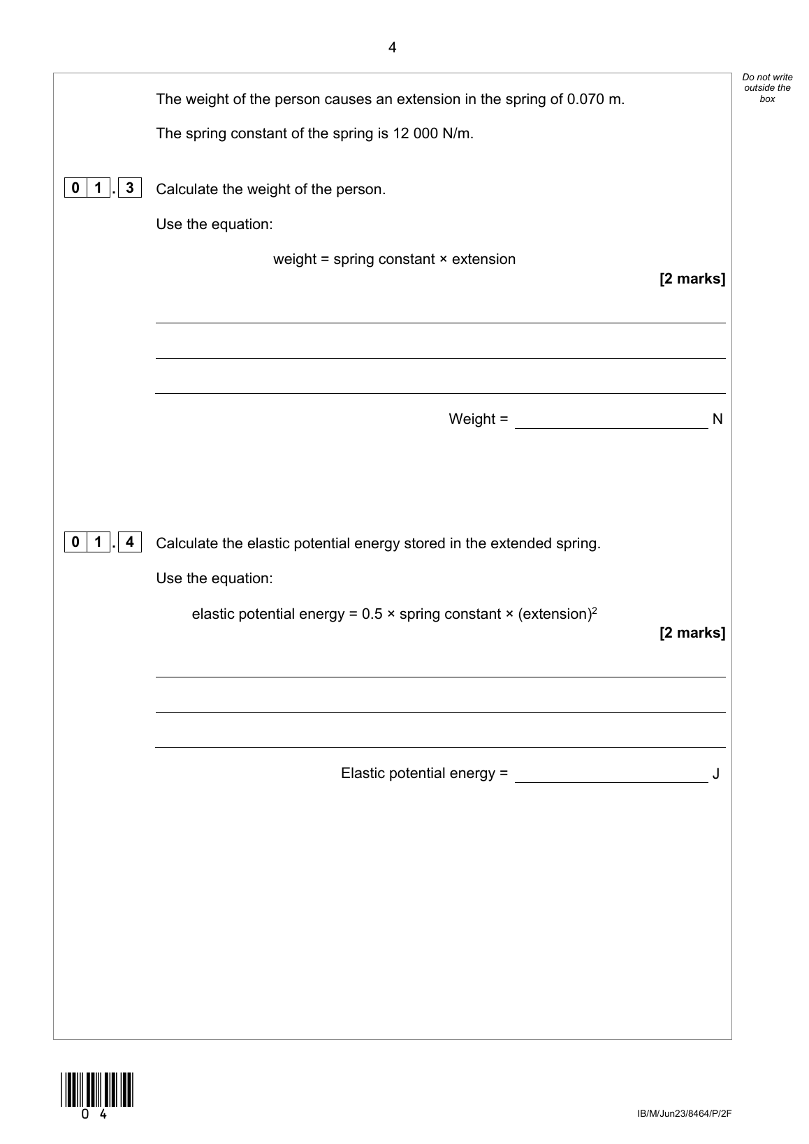 0 1 . 1 Why does the weight of the person cause the spring to extend?
