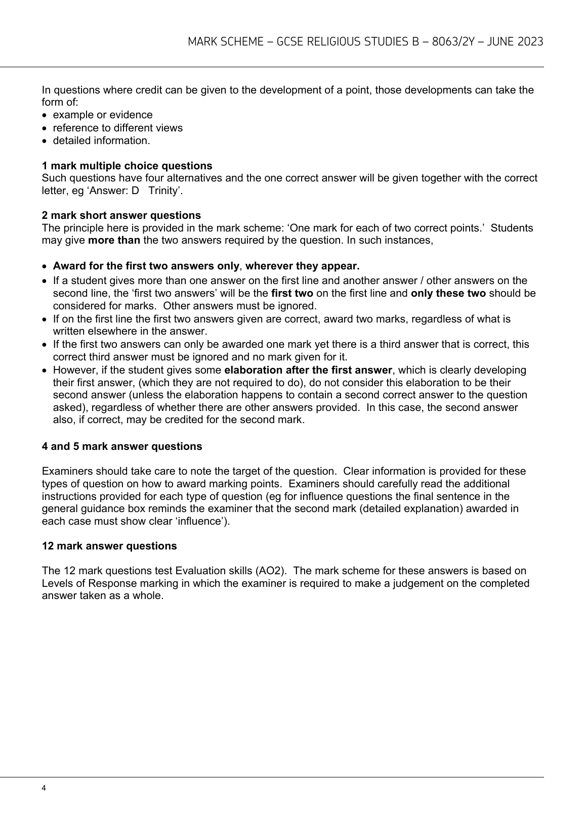 AQA GCSE RELIGIOUS STUDIES B PAPER 2 MARK SCHEME 2023 (8063/2Y: Perspectives on faith (Judaism))