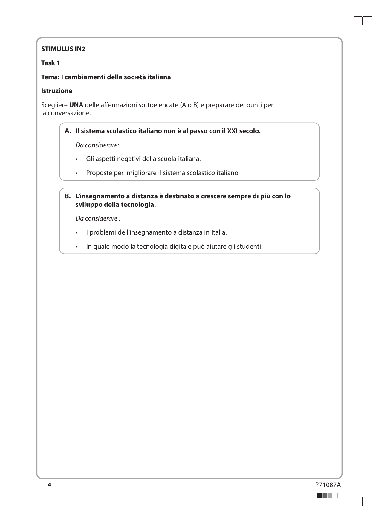 PEARSON EDEXCEL A LEVEL Italian PAPER 3 2023 QUESTION PAPER (9IN0/03: Speaking)