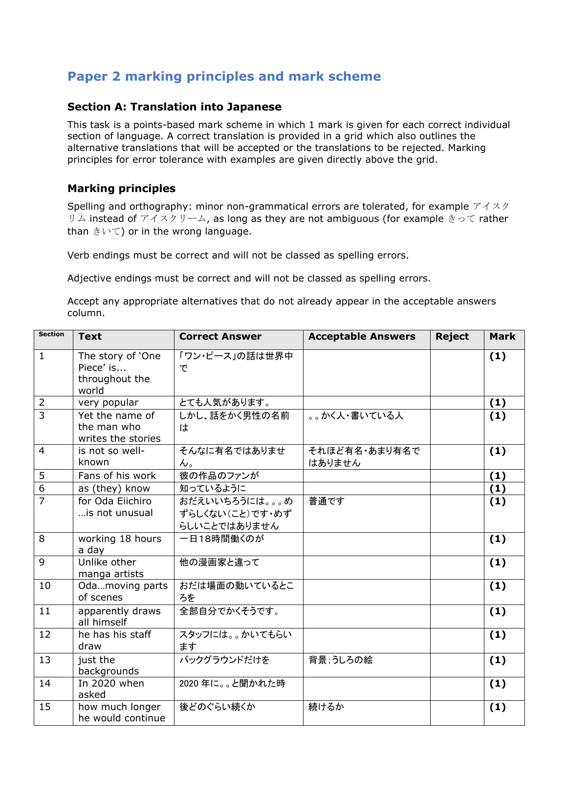 PEARSON EDEXCEL A LEVEL Japanese PAPER 2 2023 MARK SCHEME (9JA0/02: Translation into Japanese and written response to works). DOWNLOAD OFFICIAL AND VERIFIED EDEXCEL PEARSON A LEVEL Japanese PAPER 2 2023 MARK SCHEME on www.leakedexams.com INSTANTLY.