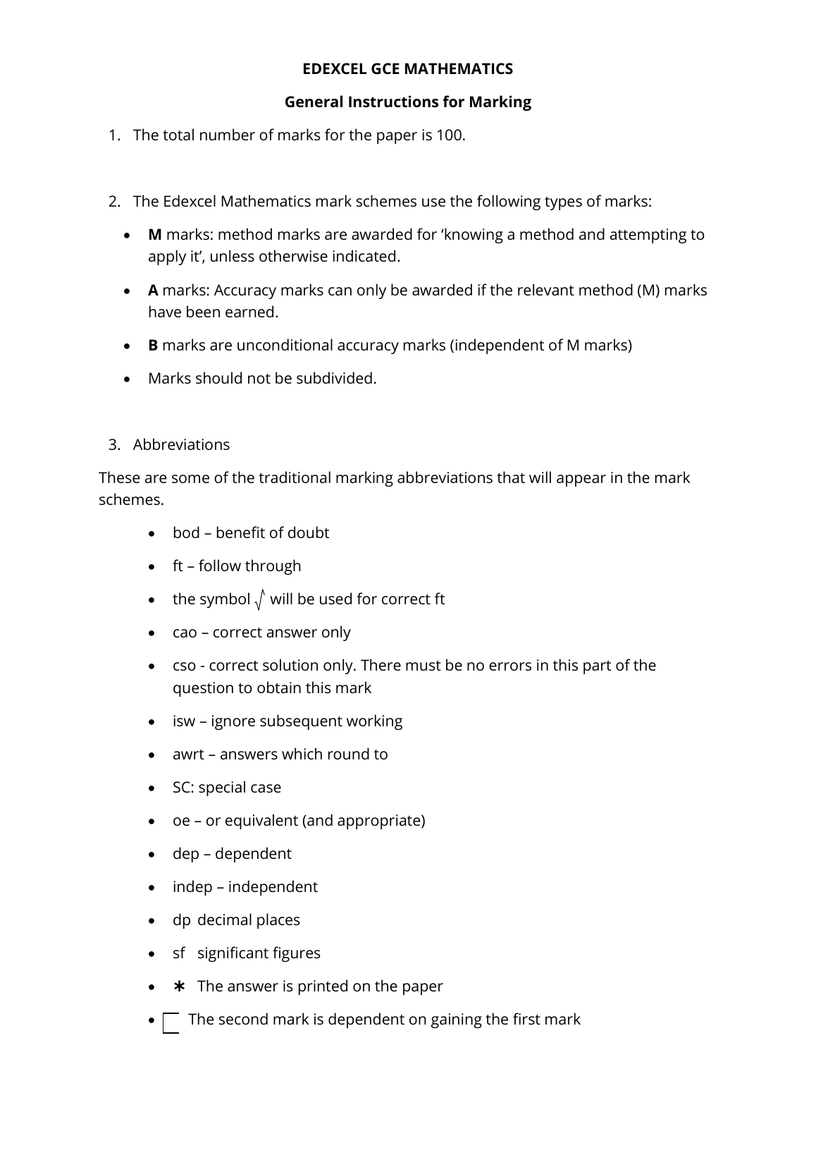 PEARSON EDEXCEL A LEVEL Mathematics PAPER 1 2023 MARK SCHEME (9MA0/01: Pure Mathematics)