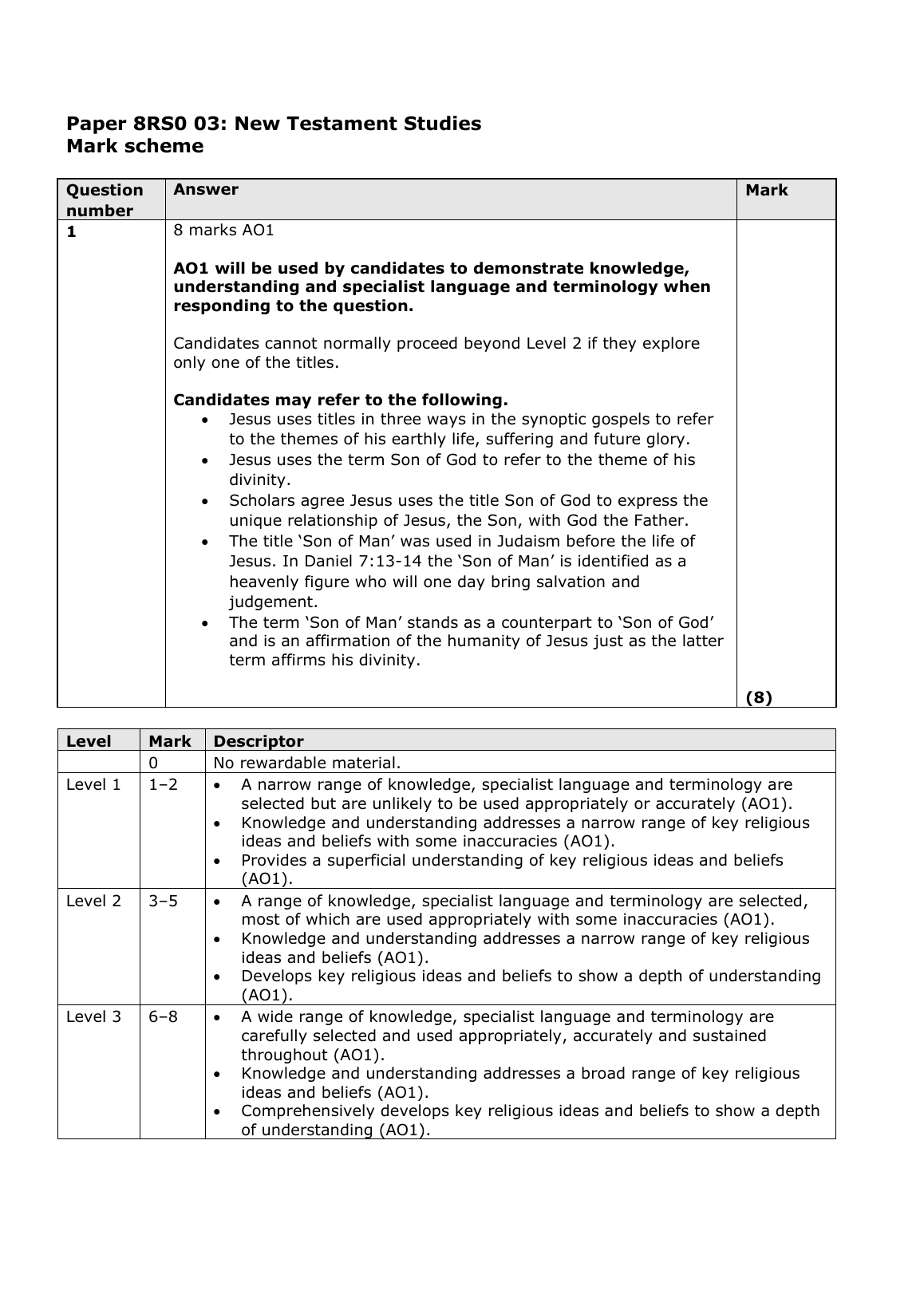 PEARSON EDEXCEL AS LEVEL Religious Studies PAPER 3 2023 MARK SCHEME (8RS0/03: New Testament Studies). DOWNLOAD OFFICIAL AND VERIFIED EDEXCEL PEARSON AS LEVEL Religious Studies PAPER 3 2023 MARK SCHEME on www.leakedexams.com INSTANTLY.