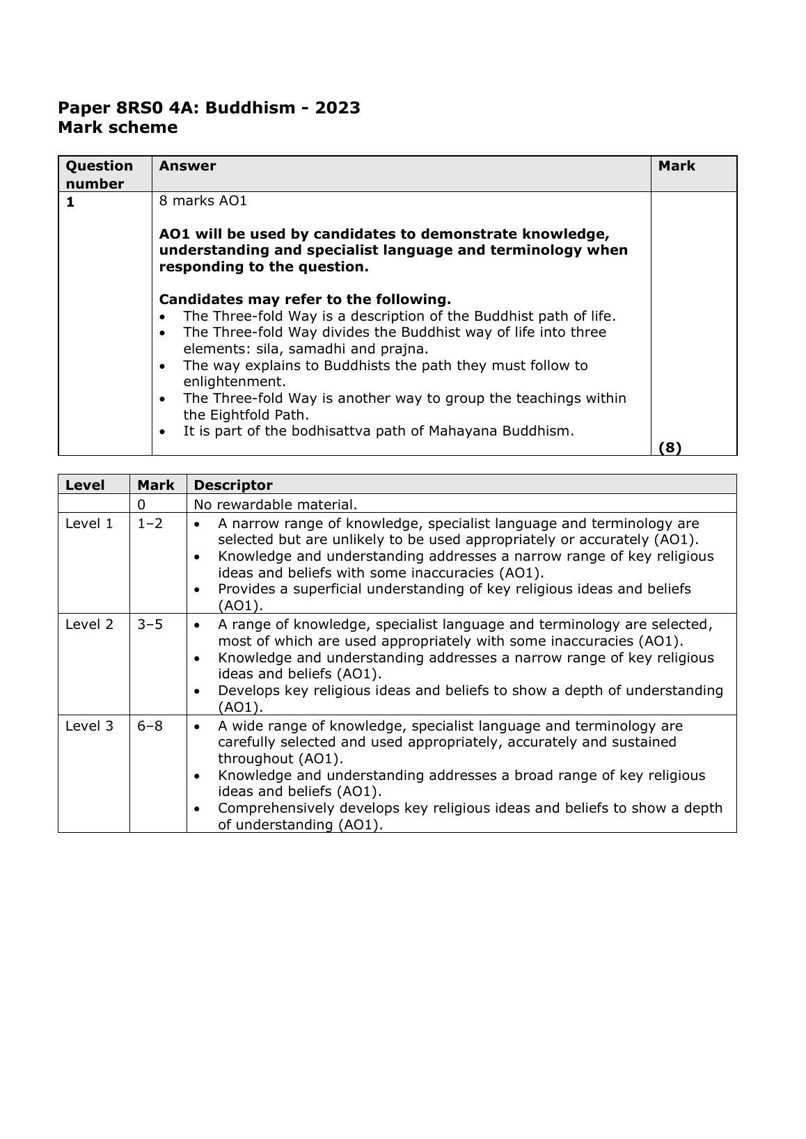 PEARSON EDEXCEL AS LEVEL Religious Studies PAPER 4 2023 MARK SCHEME (8RS0/4A: Buddhism). DOWNLOAD OFFICIAL AND VERIFIED EDEXCEL PEARSON AS LEVEL Religious Studies PAPER 4 2023 MARK SCHEME on www.leakedexams.com INSTANTLY.