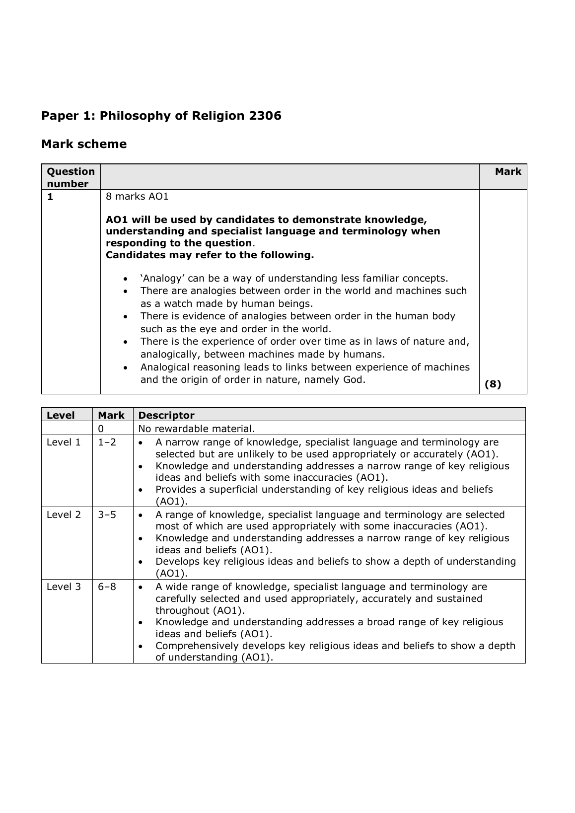 PEARSON EDEXCEL A LEVEL Religious Studies PAPER 1 2023 MARK SCHEME (9RS0/01: Philosophy of Religion). DOWNLOAD OFFICIAL AND VERIFIED EDEXCEL PEARSON A LEVEL Religious Studies PAPER 1 2023 MARK SCHEME on www.leakedexams.com INSTANTLY.