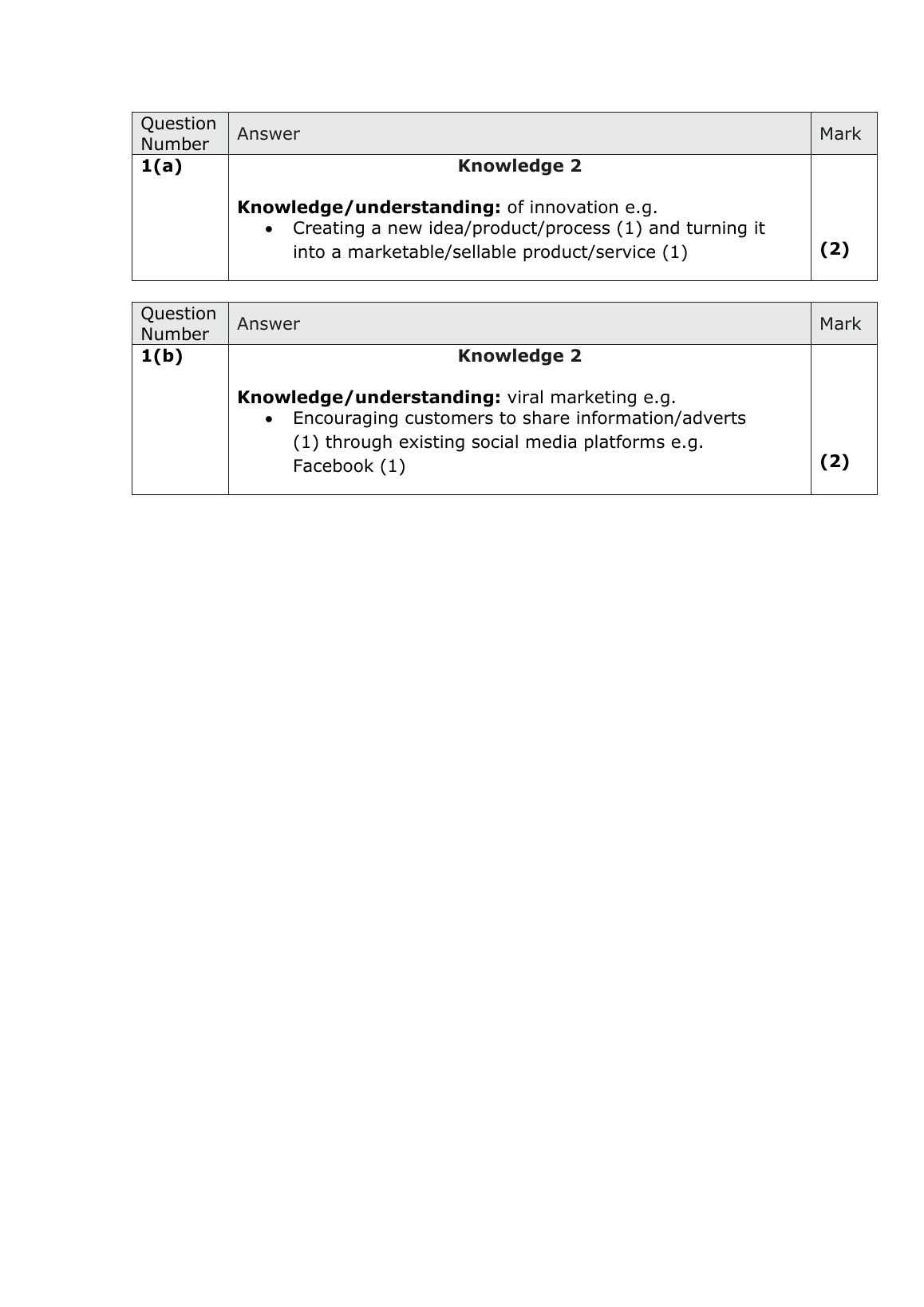 PEARSON EDEXCEL AS LEVEL Business PAPER 1 2023 MARK SCHEME (8BS0/01: Marketing and People)