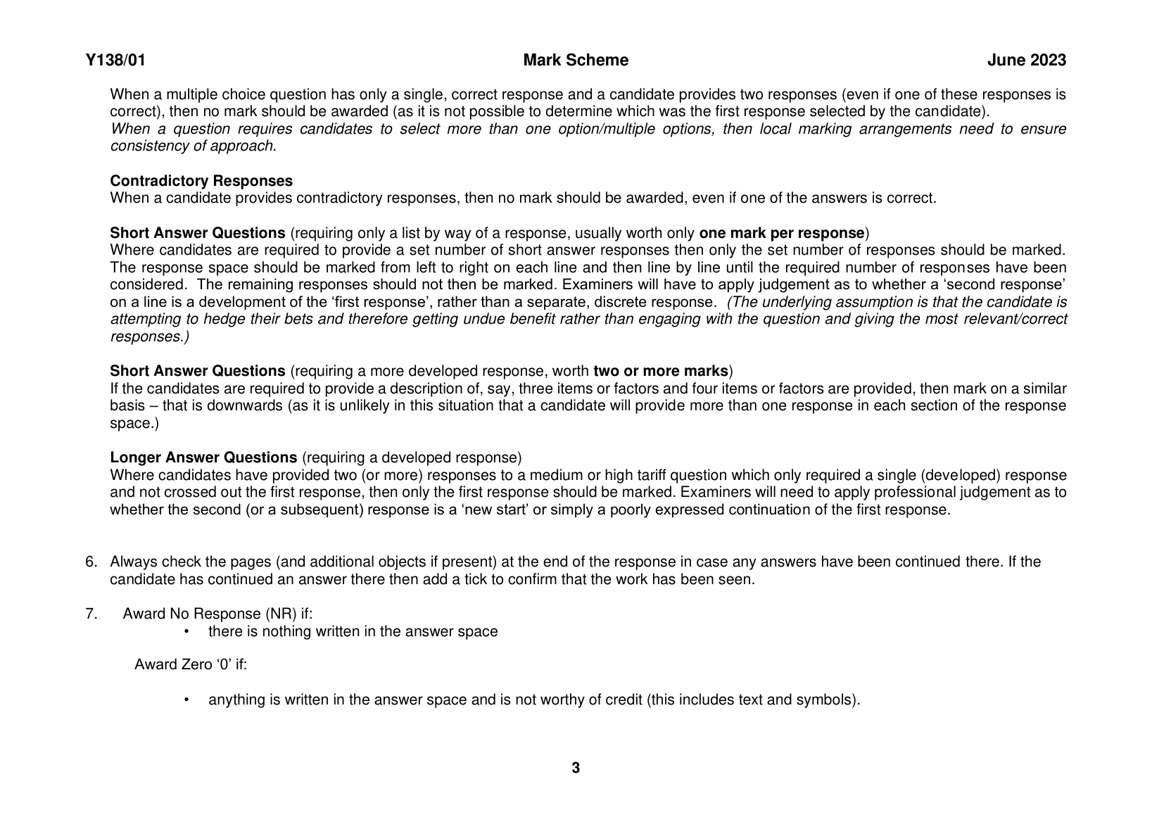 OCR GCE A LEVEL BIOLOGY A PAPER 3 MARK SCHEME 2023...
