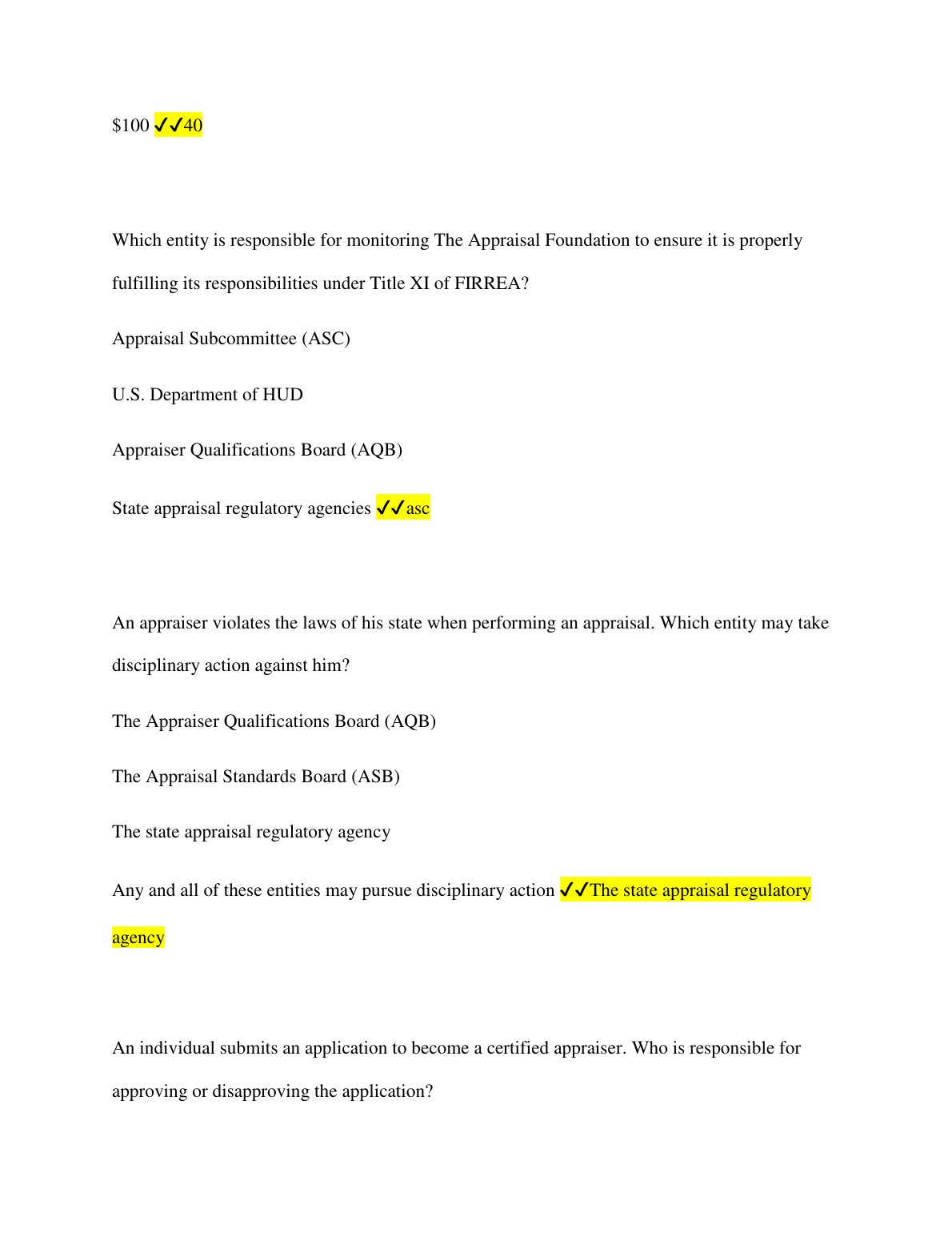 USPAP 2024 Questions and Answers Solved