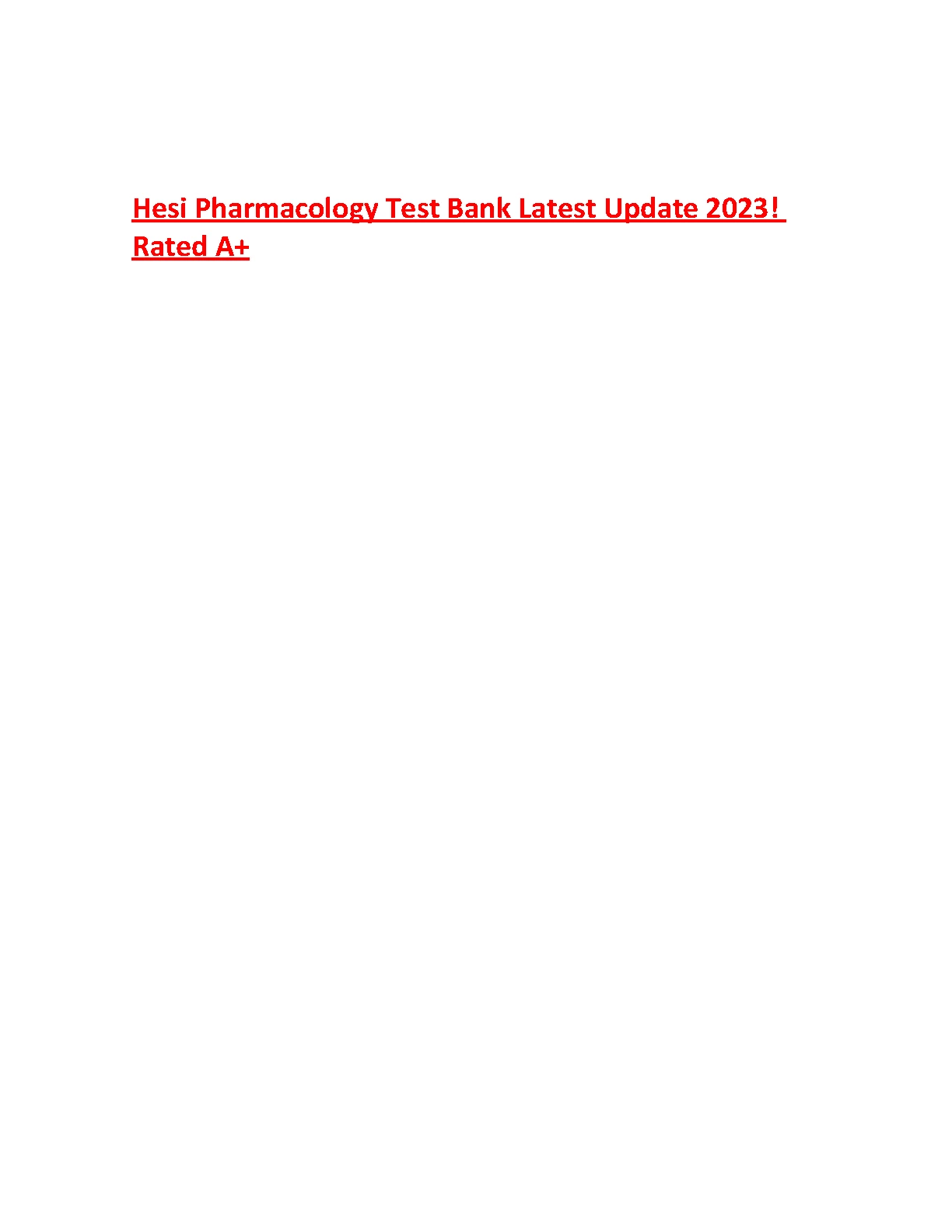 HESI Pharmacology Test Bank Latest Update 2024 Rated A+