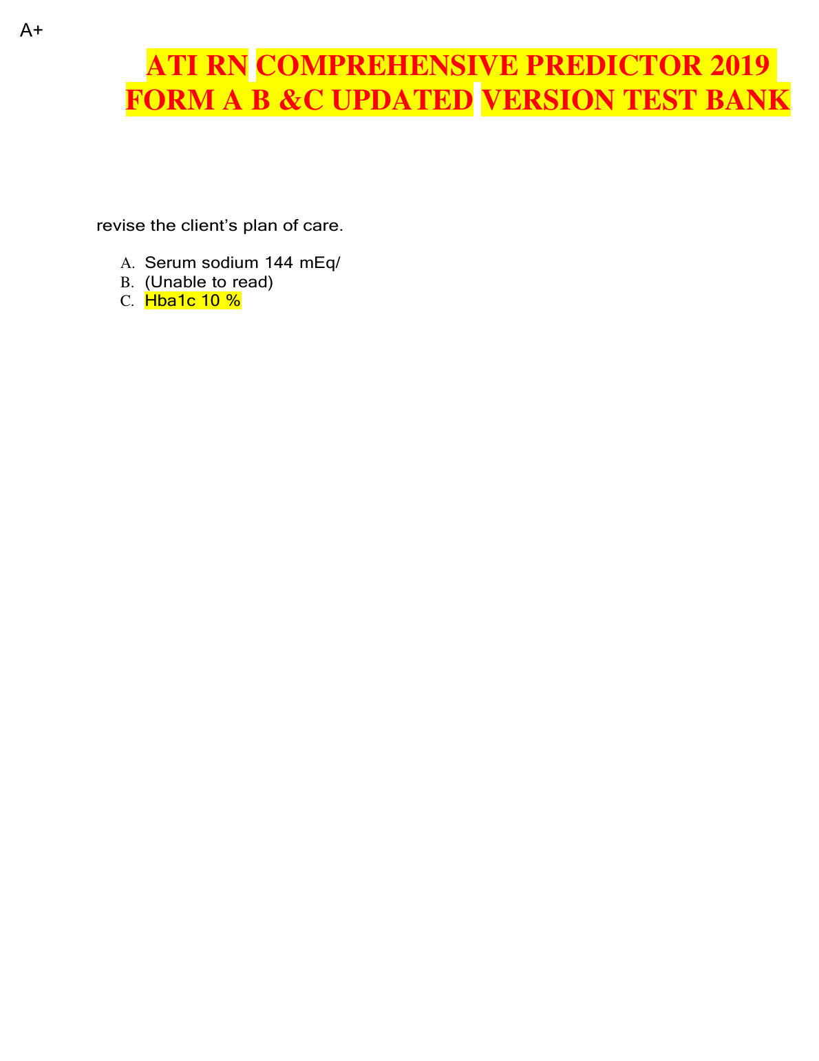 ATI RN COMPREHENSIVE PREDICTOR 2024 FORM A B & C UPDATED VERSION TEST BANK