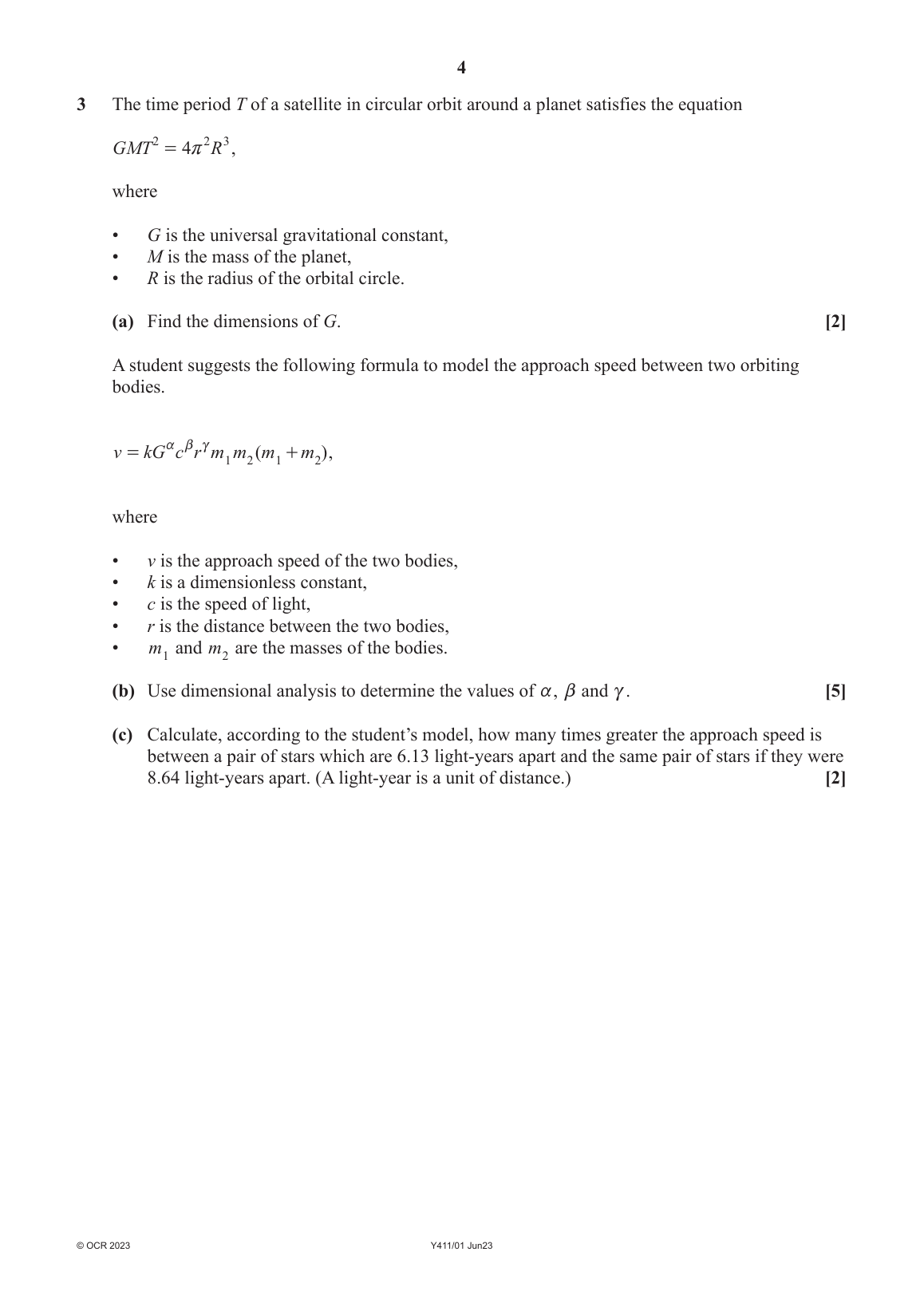 OCR GCE AS LEVEL FURTHER MATHEMATICS B PAPER 1 QUESTION PAPER 2023 (Y411/01: Mechanics A)