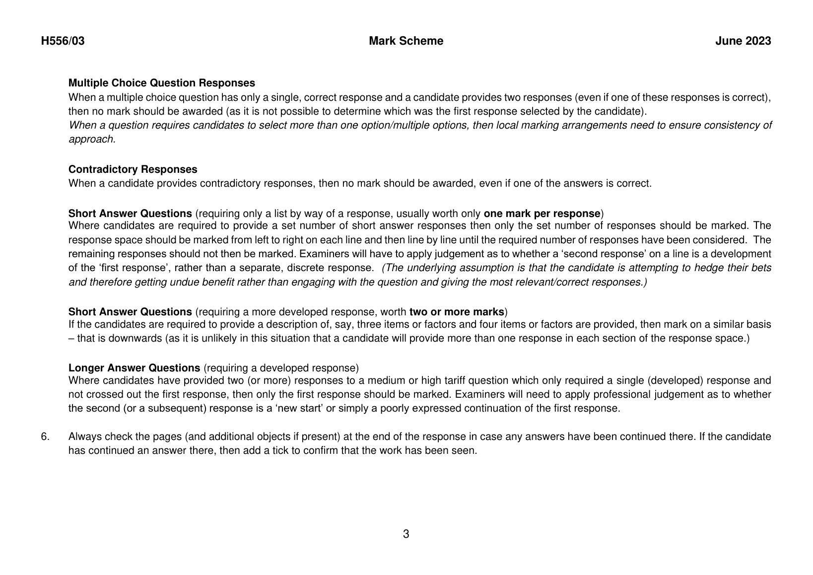 OCR GCE A LEVEL PHYSICS A PAPER 3 MARK SCHEME 2023 (H556/03: Unified physics)