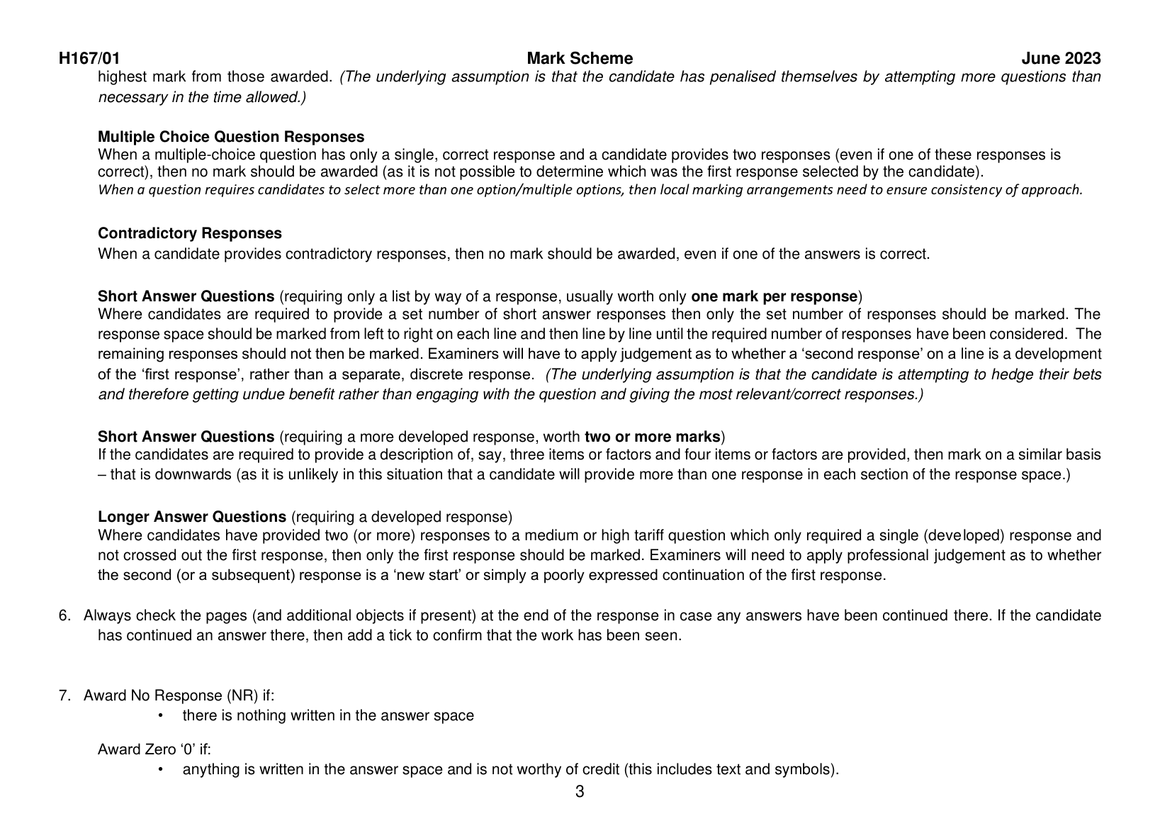 OCR GCE AS LEVEL PSYCHOLOGY PAPER 1 MARK SCHEME 2023 (H167/01: Research methods)