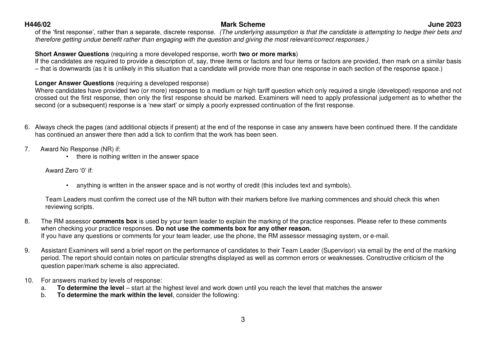 OCR GCE A LEVEL COMPUTER SCIENCE PAPER 2 MARK SCHEME 2023 (H446/02: Algorithms and programming)