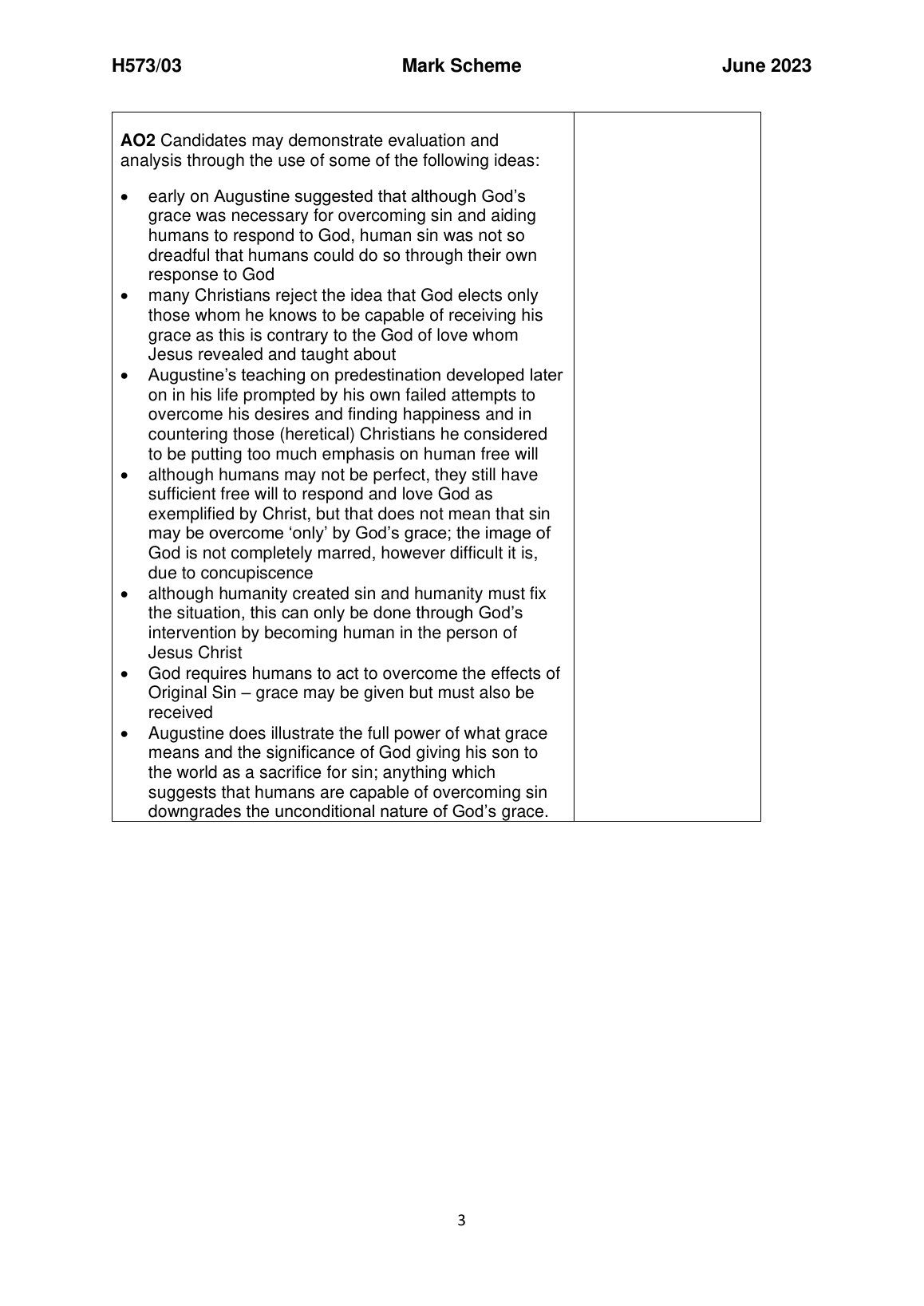 OCR GCE A LEVEL RELIGIOUS STUDIES PAPER 3 MARK SCHEME 2023 (H573/03: Developments in Christian thought)