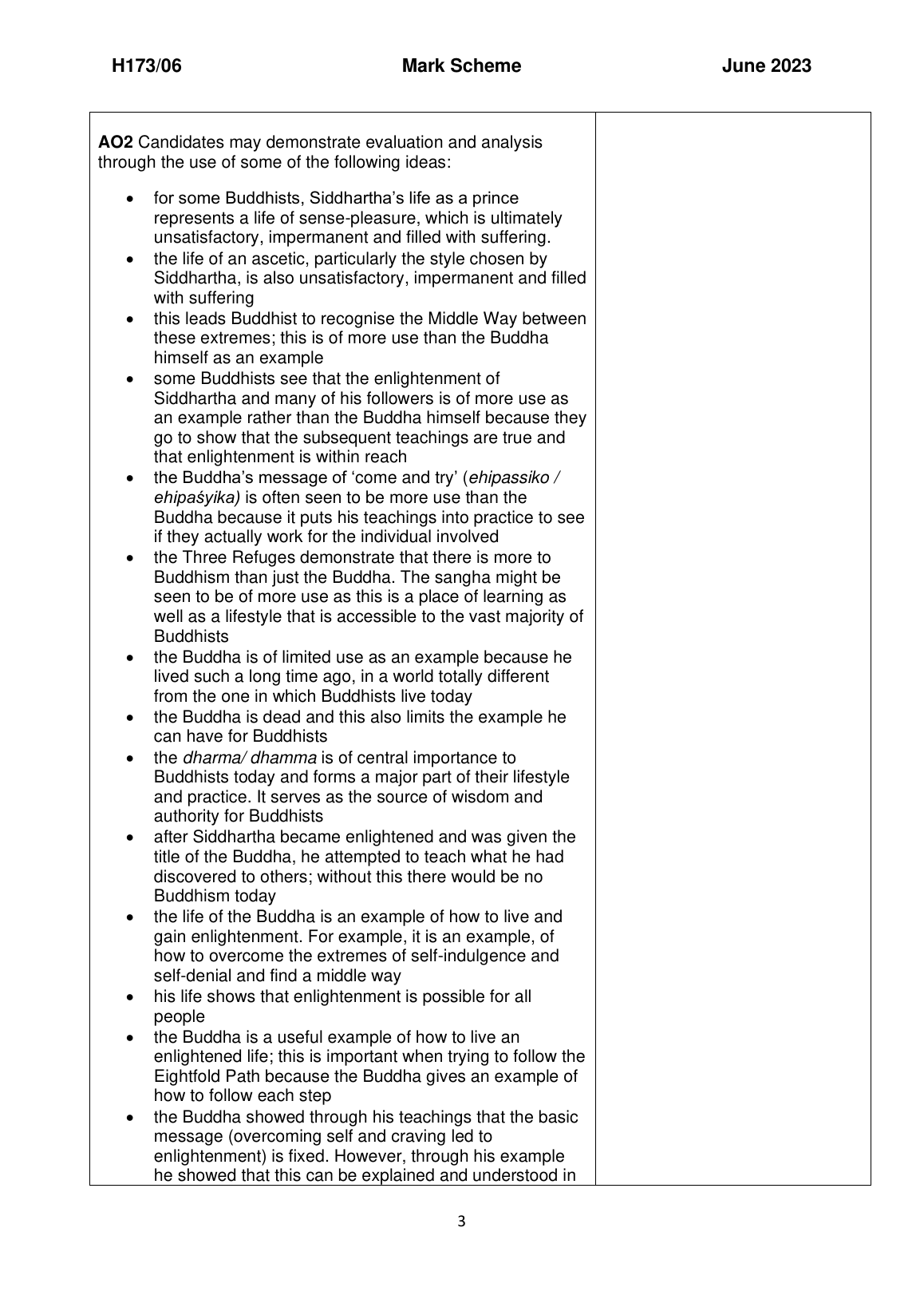 OCR GCE AS LEVEL RELIGIOUS STUDIES PAPER 6 MARK SCHEME 2023 (H173/06: Developments in Buddhist thought)
