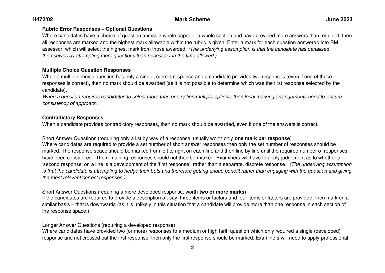 OCR GCE A LEVEL BIOLOGY A PAPER 2 MARK SCHEME 2023...