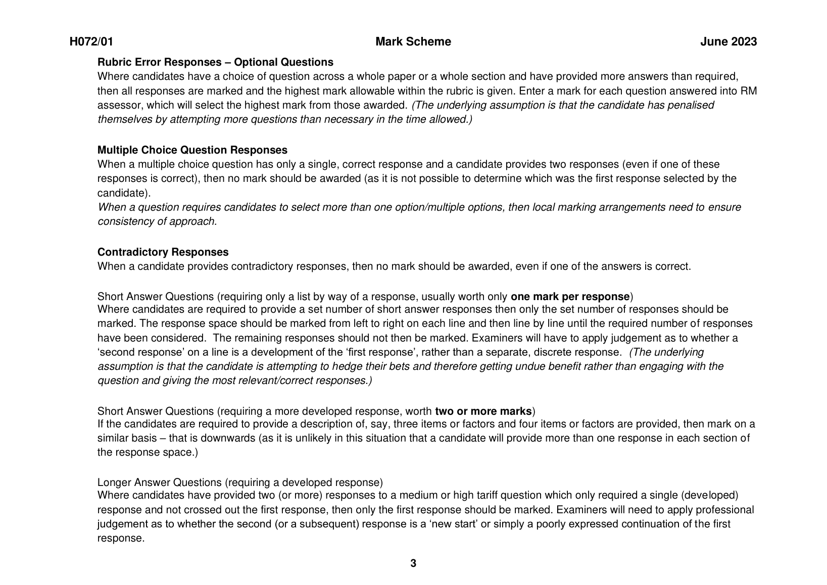 OCR GCE A LEVEL BIOLOGY A PAPER 3 MARK SCHEME 2023...