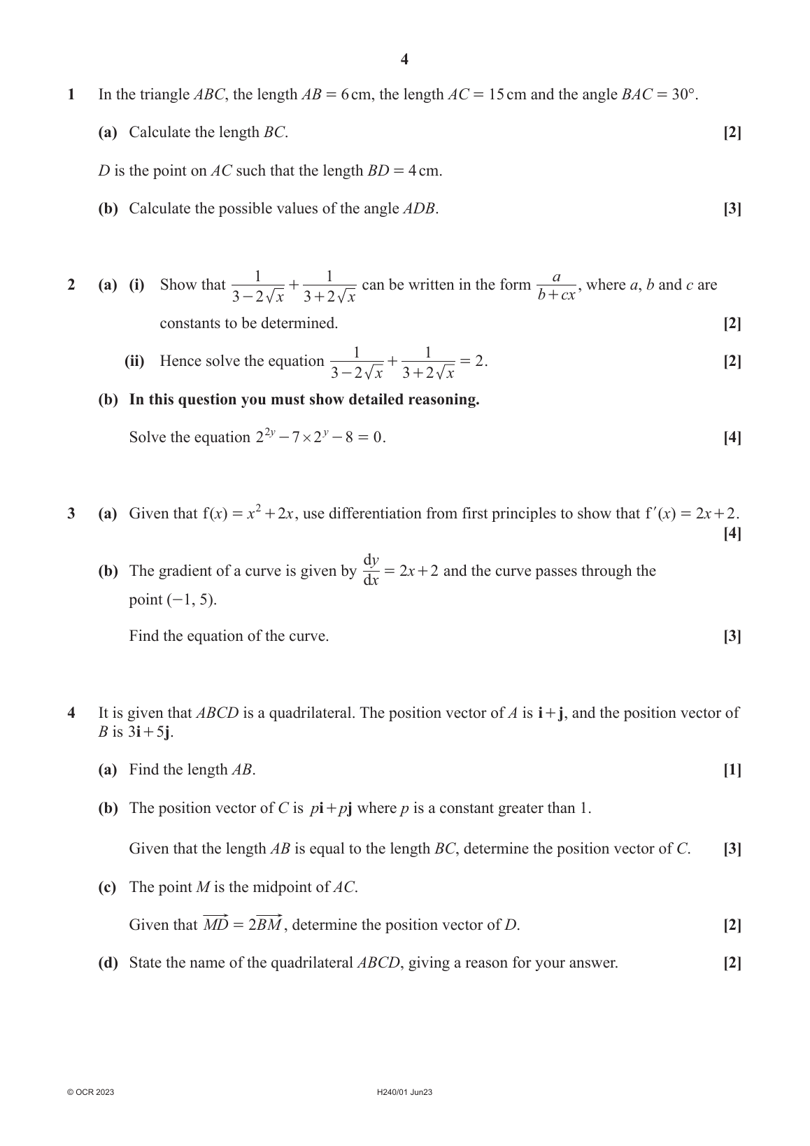 2 (a) (i) Show that