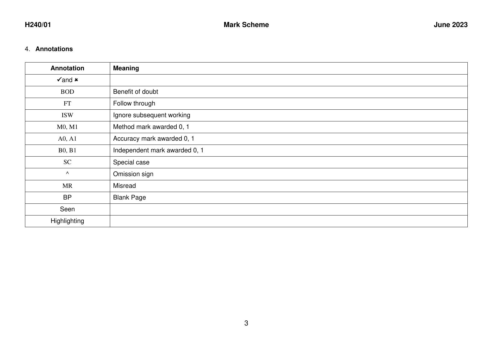 OCR GCE A LEVEL MATHEMATICS A PAPER 1 MARK SCHEME 2023 (H240/01: Pure Mathematics)
