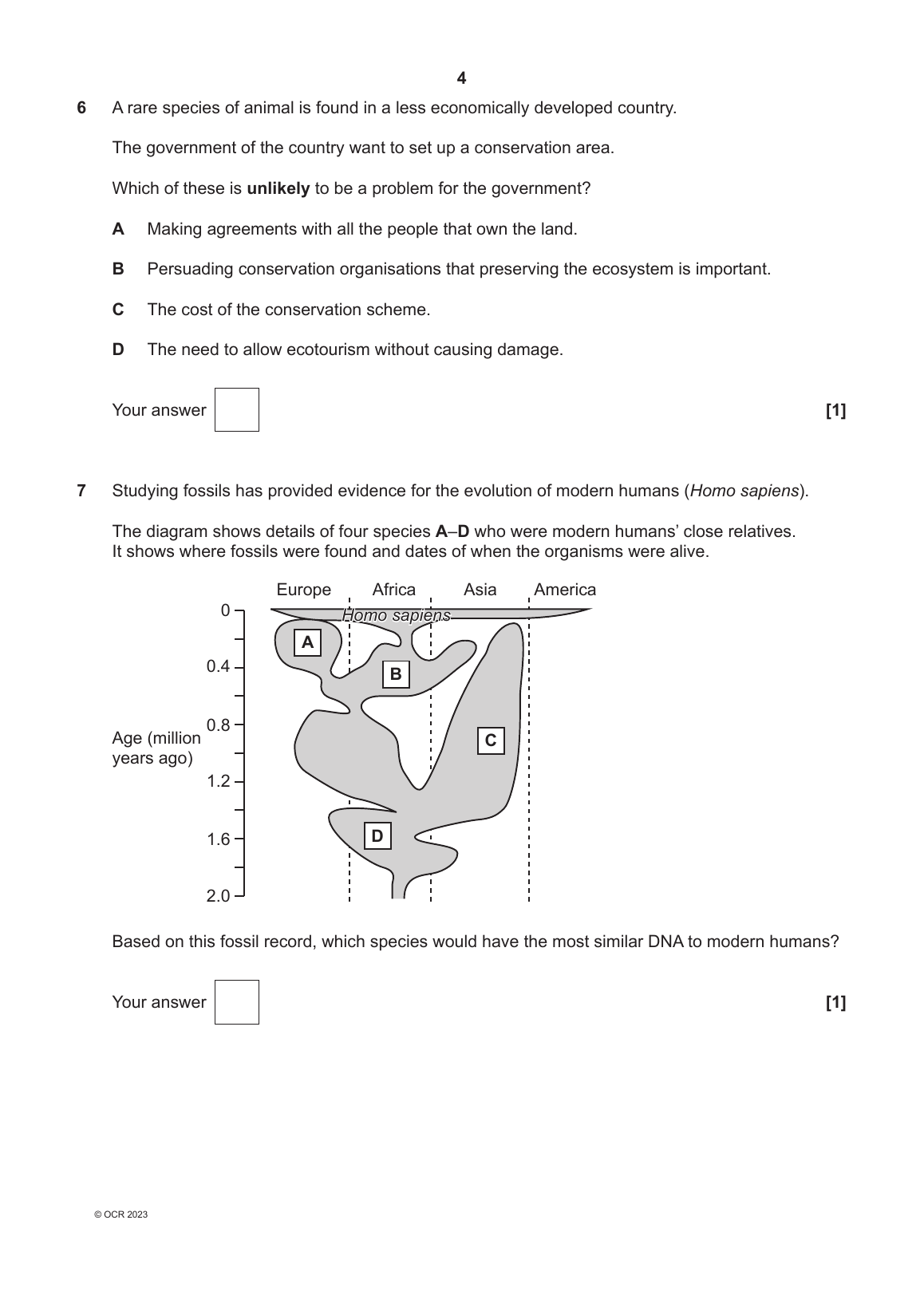 OCR GCSE BIOLOGY A PAPER 4 QUESTION PAPER 2023 (J247/04: Higher Tier)